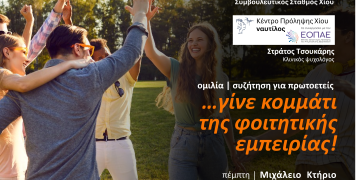 Το Κέντρο Πρόληψης Χίου, σε συνεργασία με τον Εθνικό Οργανισμό Πρόληψης και Αντιμετώπισης Εξαρτήσεων (Ε.Ο.Π.Α.Ε.), διοργανώνει σε...