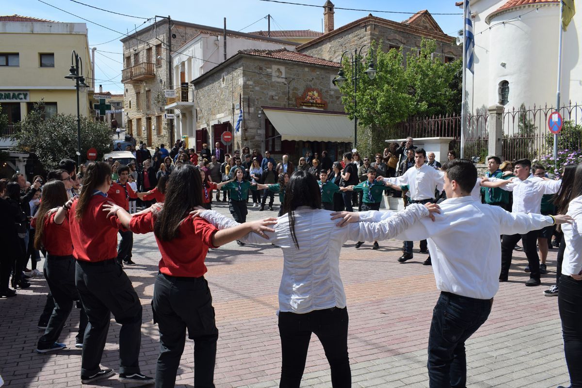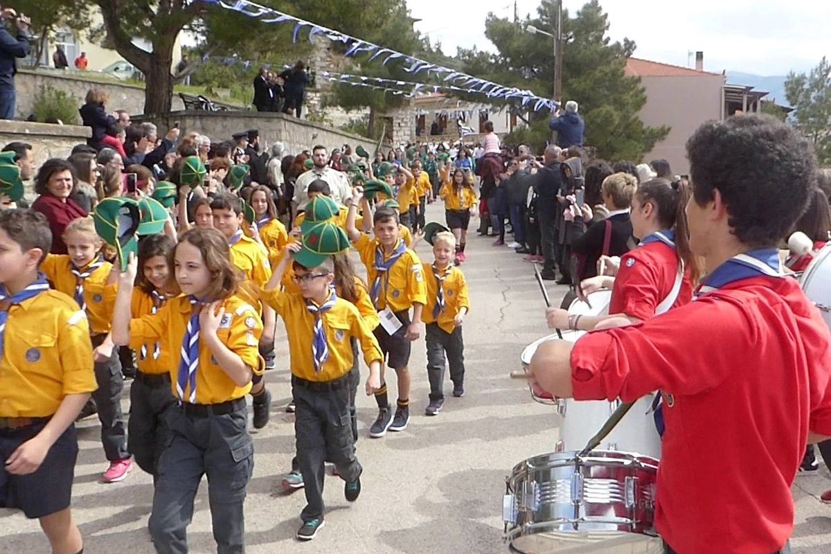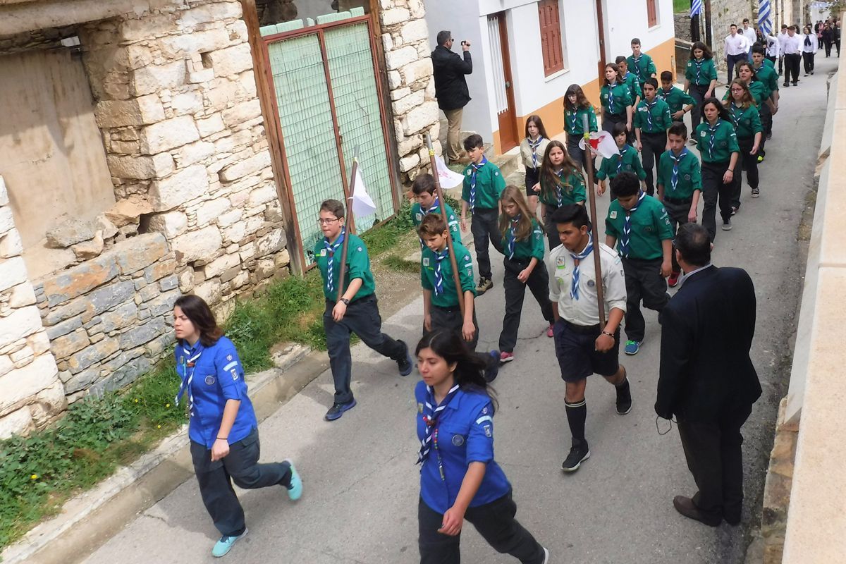 Την Κυριακή 25/3, ανήμερα της εθνικής εορτής, στις 7 το πρωί, η μπάντα μας παιανίζει για πρώτη φορά στα σοκάκια του χωριού. Λίγο μετά τις 10, μαζί με τα Σχολεία της Βολισσού (Νηπιαγωγείο, Δημοτικό, Γυμνάσιο με λυκειακές Τάξεις), κατηφορίζουμε σε σχηματισμό προς τον Ιερό Ναό του Σωτήρος για τη Δοξολογία. Ο πανηγυρικός της ημέρας, που εκφώνησε η προϊσταμένη του Δημοτικού Σχολείου κα Ευγενία Σεζένια, ήταν ιδιαίτερα μεστός και ουσιώδης. Με ρυθμό και βήμα από την μπάντα οδηγούμαστε στο Μνημείο Ηρώων για κατάθεση στεφάνων, όπου για πρώτη φορά στεφάνι καταθέτουμε εκ μέρους του Σώματος Ελλήνων Προσκόπων. Αμέσως μετά ξεκίνησε η παρέλαση όπου τα παιδιά μας έδωσαν ένα άλλο χρώμα με τις πολύχρωμες στολές τους! Μετά την καθιερωμένη φωτογραφία, συγκεντρωθήκαμε στην πλατεία. Ακολούθησαν παραδοσιακοί χοροί από τα μέλη του Πολιτιστικού Συλλόγου και παιχνίδια που διοργανώσαμε για όλα τα παιδιά! Αυθόρμητα Ανιχνευτές και Πρόσκοποι χόρεψαν μαζί με τα παιδιά του χωριού και έγιναν μία μεγάλη παρέα!
