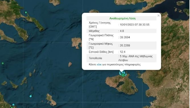 Νέος ισχυρός σεισμός σημειώθηκε το πρωί στ' ανοιχτά της Λέσβου και έγινε αισθητός και στη Χίο.