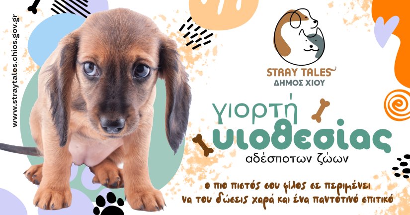 Την Παρασκευή 21 Νοεμβρίου, ο Δήμος Χίου θα πραγματοποιήσει την 8η γιορτή υιοθεσίας από τις 11 μέχρι τη 1 στο Κεντρικό Δημαρχείο Χίου όπου θα υπάρχουν αδέσποτα κουταβάκια για υιοθεσία και ταυτόχρονα οι πολίτες θα έχουν την ευκαιρία να ενημερωθούν για τις ανάγκες των φιλοζωικών σωματείων αλλά και για τις υποχρεώσεις που έχει η πράξη της υιοθεσίας και όχι μόνο.
