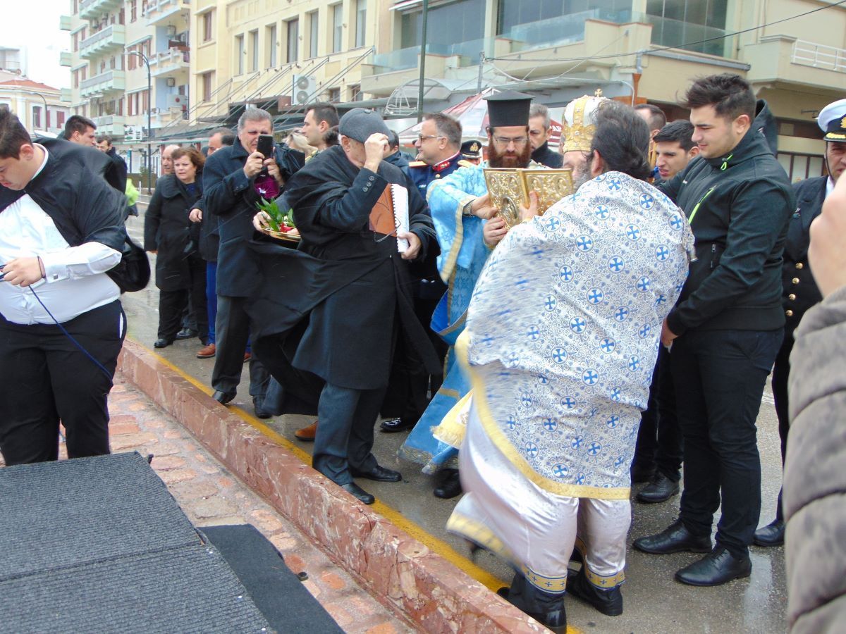 Αψηφώντας τον δυνατό άνεμο και τα αφρισμένα κύματα, ο Μητροπολίτης Χίου κ. Μάρκος, συνοδευόμενος από τον Στρατιωτικό Διοικητή Χίου Ταξίαρχο Σταύρο Παπασταθόπουλο, την Λιμενάρχη Χίου Ειρήνη Αργύρη και ελάχιστο κόσμο, αγίασε μετά την Θεία Λειτουργία στον Ιερό Μητροπολιτικό Ναό Χίου, τα ύδατα του Λιμανιού.