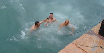 Τρείς τολμηροί κολυμβητές ανάσυραν τον Σταυρό και δέχτηκαν την ευλογία και τις ευχές του Μητροπολίτη, καθώς και τα συγχαρητήρια των παρευρισκομένων.