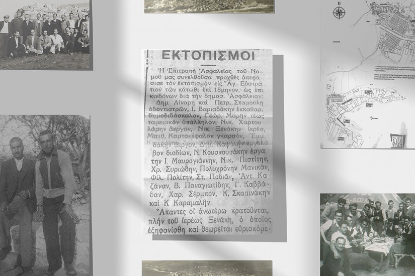 Οι συνεδριάσεις της Νομαρχιακής Επιτροπής Δημόσιας Ασφαλείας Χίου, με αλλεπάλληλες και καθημερινές καταδικαστικές αποφάσεις βγάζουν τους δημοκρατικούς πολίτες «ως επικίνδυνους για τη δημοσίαν ασφάλειαν» και τους εκτοπίζουν στον Άγιον Ευστράτιο.