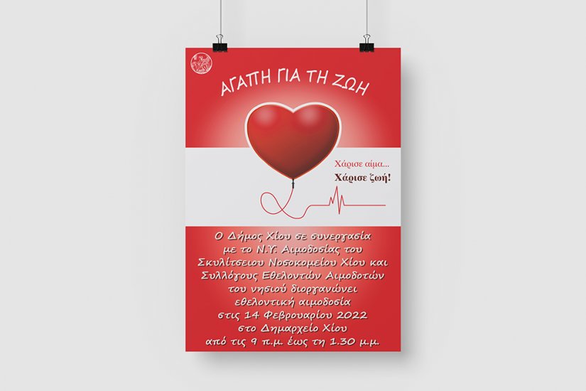 Η Νοσοκομειακή Υπηρεσία Αιμοδοσίας Χίου ενημερώνει ότι την Δευτέρα 14 Φεβρουαρίου θα πραγματοποιηθεί εθελοντική Αιμοδοσία με την υποστήριξη του Δήμου Χίου, την συνεργασία του κοινωνικού φαρμακείου και του κέντρου Κοινότητας του Δήμου Χίου και την συμμετοχή των συλλόγων: