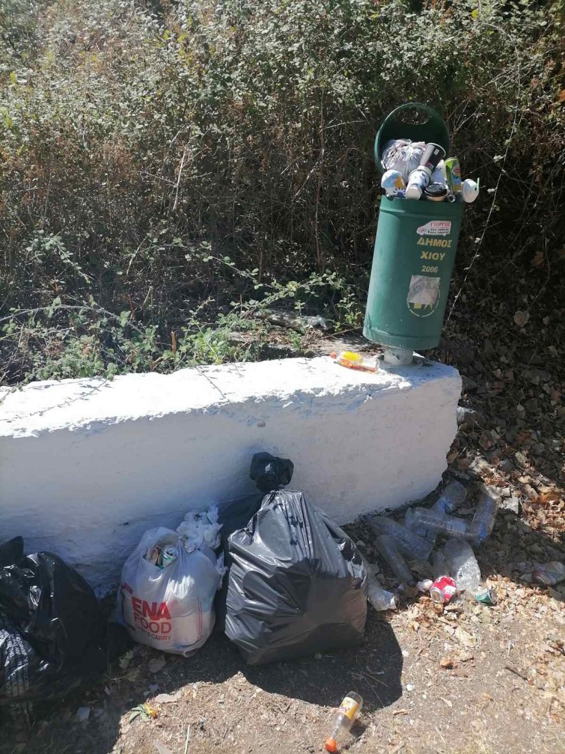 Αυτή ήταν η εικόνα καθαριότητας των Αμάδων την Κυριακή 18 Αυγούστου, στην είσοδο του χωριού, απέναντι από την μοναδική ταβέρνα, που δραστηριοποιείται εκεί όλο το χρόνο.