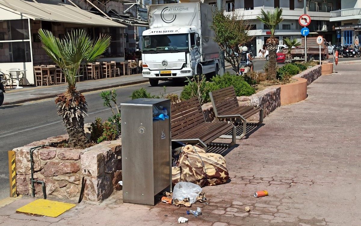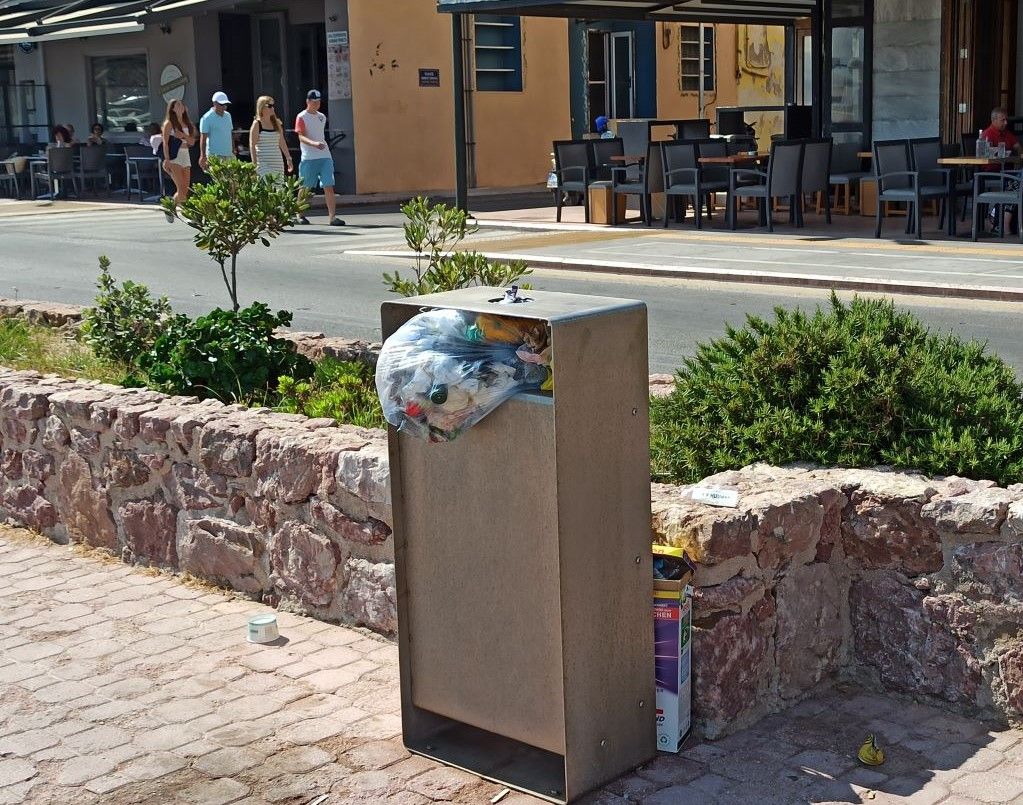 Τετάρτη 6 Αυγούστου 2025 : Οι 3 πρώτες φωτό δείχνουν ξέχειλους κάδους στο λιμάνι της Χίου ώρα 10 – 11 το πρωί σε διάφορα σημεία.