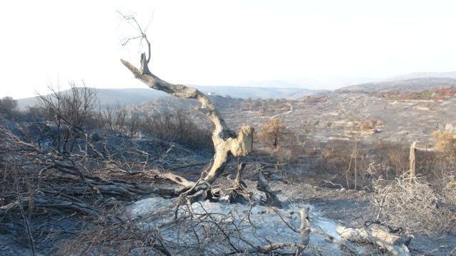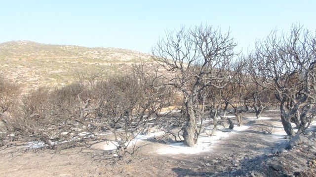 Δεύτερη μεγάλη πυρκαγιά από το 2012, συνήθως κάτι ψιλές τις… ξεχνάμε, Δευτέρα 25 Ιουλίου, μέχρι και την Παρασκευή που επισκεφθήκαμε ενδεικτικά την κατεστραμμένη Ελάτα, η φωτιά έκαιγε ακόμα μέσα στις ρίζες των αιωνόβιων ελιών. 43.431 στρέμματα στάχτη, 35.000 σχίνοι κάρβουνο, χιλιάδες ελιές, καλλιέργειες, περιουσία, μνήμες, νούμερα και συναισθήματα σκεπασμένα με στάχτη.