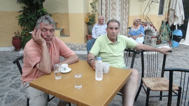 _Σ’ αυτό τον σχίνο κένταγα με την γιαγιά μου, ανοίγαμε εκεί τη λακκούβα να βγάζομε το ασπρόχωμα και για να μη γκρινιάζομε μας έλεγε, «σκάβετε βρε εφτού, κι’ άμαν έρτουν οι Τούρκοι, θα κάμομε δυό ψωμιά και θα χωθούμε εδώ μέσα μέχρι να ξεκουμπιστούνε. Ετσι δα μούλεγε και μένα η γιαγιά μου»