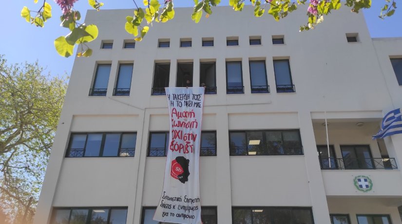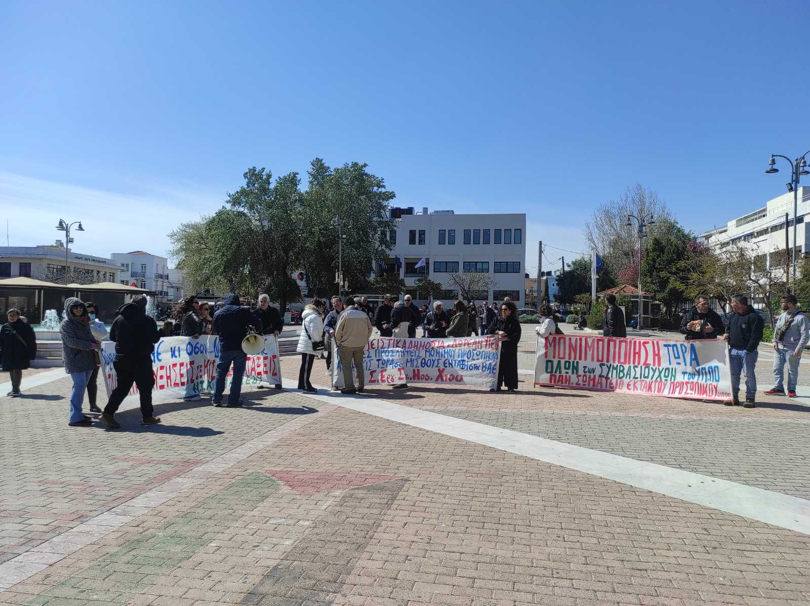 Μπορεί η συμμετοχή στην απεργιακή συγκέντρωση, που είναι σε εξέλιξη αυτή την ώρα στην κεντρική πλατεία της Χίου, να έχει επιστρέψει στη... συνήθη μικρή συμμετοχή, όμως λίγο πριν ξεκινήσει, συμμετέχοντες φρόντισαν να κρεμάσουν πανό κατά της εξόρυξης αντιμονίου στην Αμανή, στο κτίριο της περιφερειακής ενότητας Χίου.