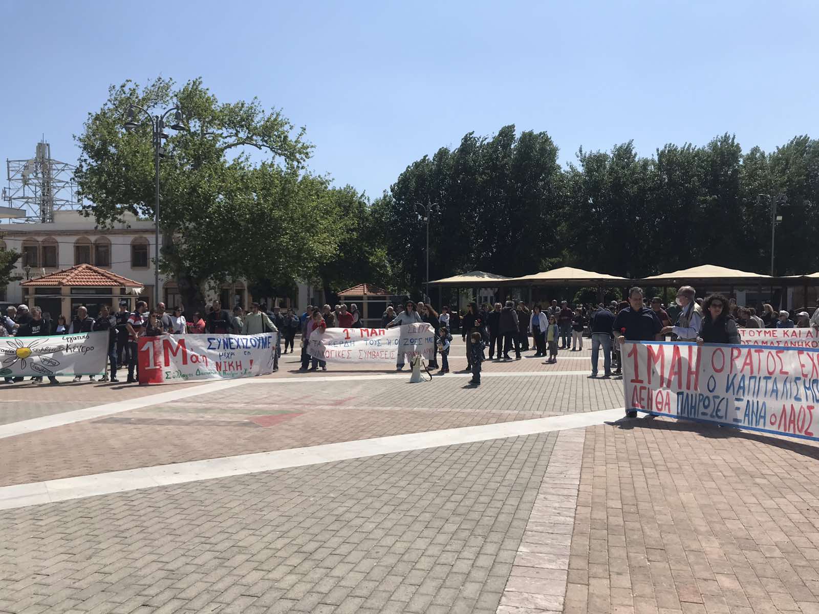 Με μια μικρή καθυστέρηση, λόγω της διακοπής της ηλεκτροδότησης, το πρωί της Τετάρτης, και με τη συνήθη - για τα χιακά δεδομένα- συμμετοχή, πραγματοποιήθηκε στην κεντρική πλατεία της Χίου η απεργιακή συγκέντρωση από εργαζόμενους και συνταξιούχους , που τίμησαν μ' αυτόν τον τρόπο της Εργατική Πρωτομαγιά, θυμίζοντας τους αγώνες του παρελθόντος, που αποτελούν πυξίδα για το παρόν αφού και σήμερα παραμένει, για παράδειγμα, ζητούμενο το 8ωρο.