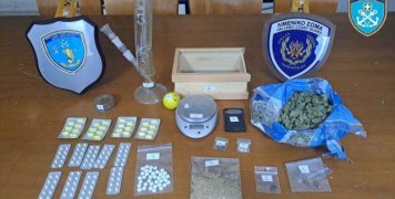 Στη συνέχεια, παρουσία δικαστικού λειτουργού, τα στελέχη ΠΟΔΙΝ και Γραφείου Ασφάλειας του Κεντρικού Λιμεναρχείου Πειραιά μετέβησαν στην κοινή οικία του 84χρονου και του 45χρονου στην περιοχή της Καλλιθέας Αττικής και διενήργησαν νόμιμη έρευνα, με τη συνδρομή του αστυνομικού σκύλου ανίχνευσης ναρκωτικών ουσιών “ΚΕΛΥ”, κατά την οποία εντόπισαν δύο γυάλινες συσκευασίες που περιείχαν αποσπάσματα κάνναβης συνολικού μικτού βάρους 109 γραμμαρίων και ένα κινητό τηλέφωνο.