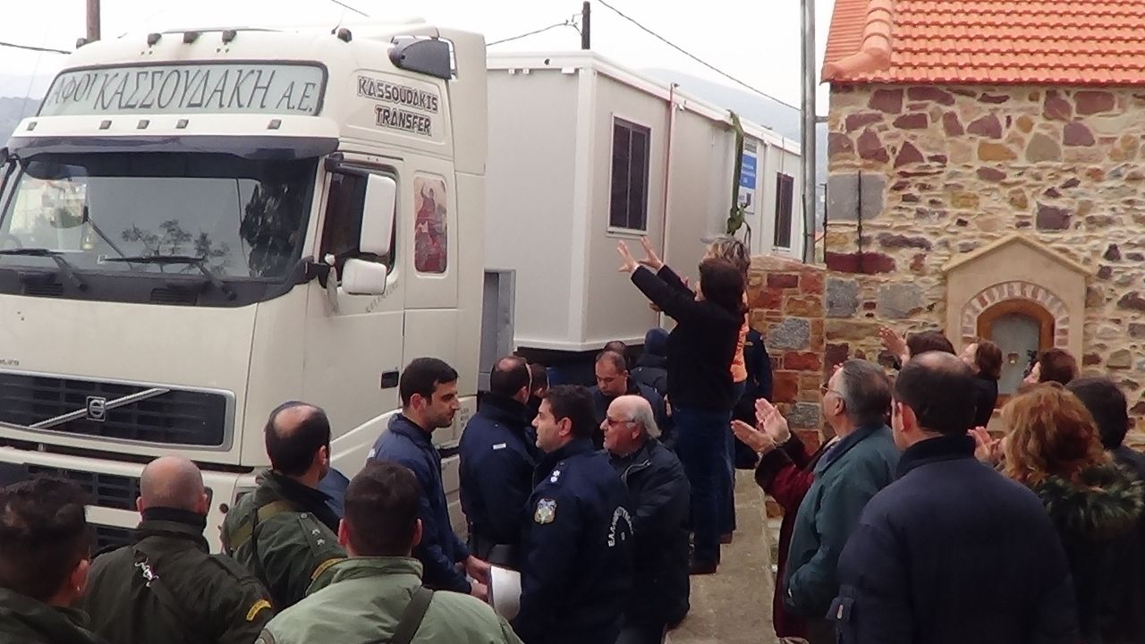 Άμεσα κινητοποιήθηκαν κάτοικοι του χωριού, προκειμένου να εμποδίσουν την διέλευση των βαρέων οχημάτων που μετέφεραν τους οικίσκους. Παράλληλα έφτασε στο σημείο και ισχυρή αστυνομική δύναμη, ενώ έκλεισε η πρόσβαση προς την πρώην ΒΙΑΛ και από τις δυο εισόδους του κεντρικού δρόμου (από Χαλκειός και από Ζυφιά).