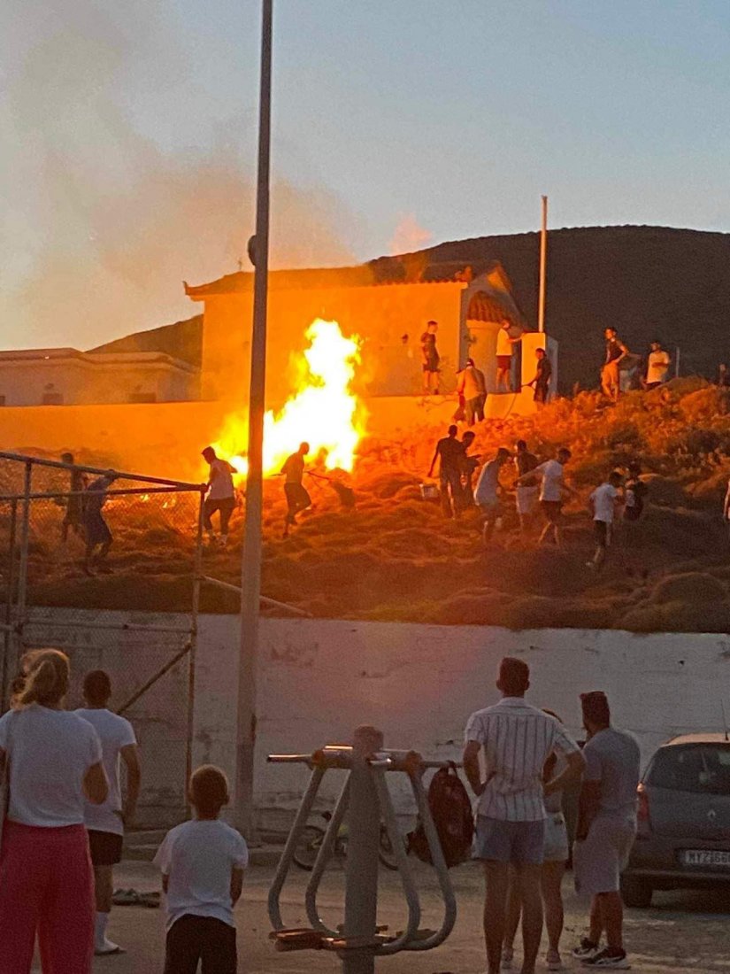 Άμεση ήταν η επέμβαση πολιτών και Δήμου για την κατάσβεση της πυρκαγιάς που εκδηλώθηκε το απόγευμα της Τρίτης 8 Αυγούστου σε έκταση πλησίον του γηπέδου ποδοσφαίρου 5x5 στα Ψαρά.