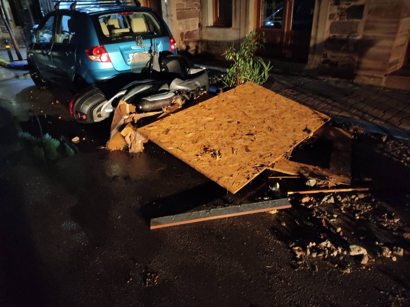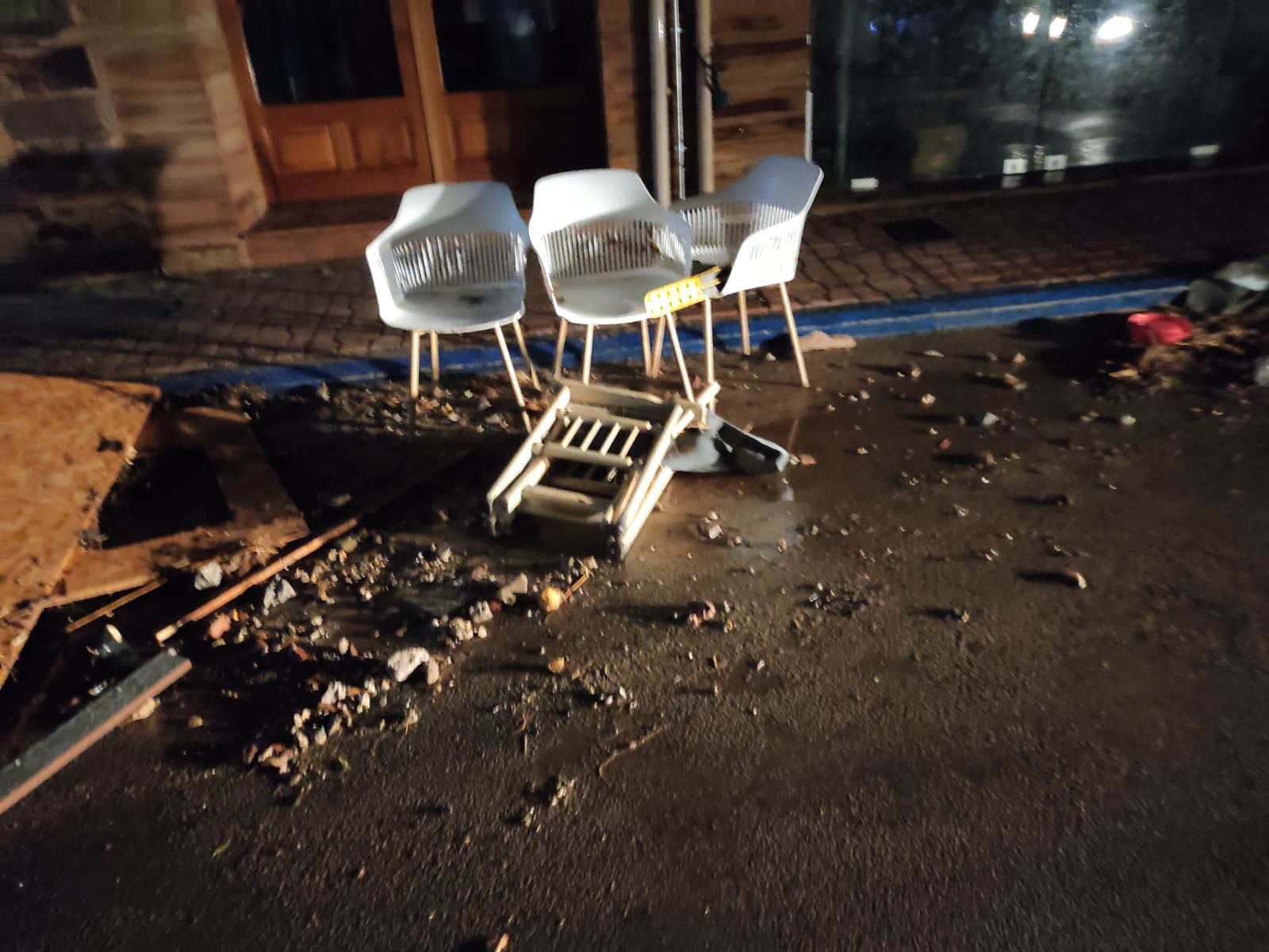 Χαρακτηριστικό της έντασης της καλοκαιρίας είναι ότι καρέκλες από Καφετέρια της Απλωταριάς βρέθηκαν στην Προκυμαία, ενώ φερτές ύλες έκλεισαν την Βενιζέλου, που από νωρίς το πρωί επιχειρούν συνεργεία του Δήμου με επικεφαλής τον Αντιδήμαρχο Καθαριότητας Δημ. Αυγερινό και τον Πρόεδρο της ΔΕΥΑΧ Πρόδρομο Μανωλάκη.