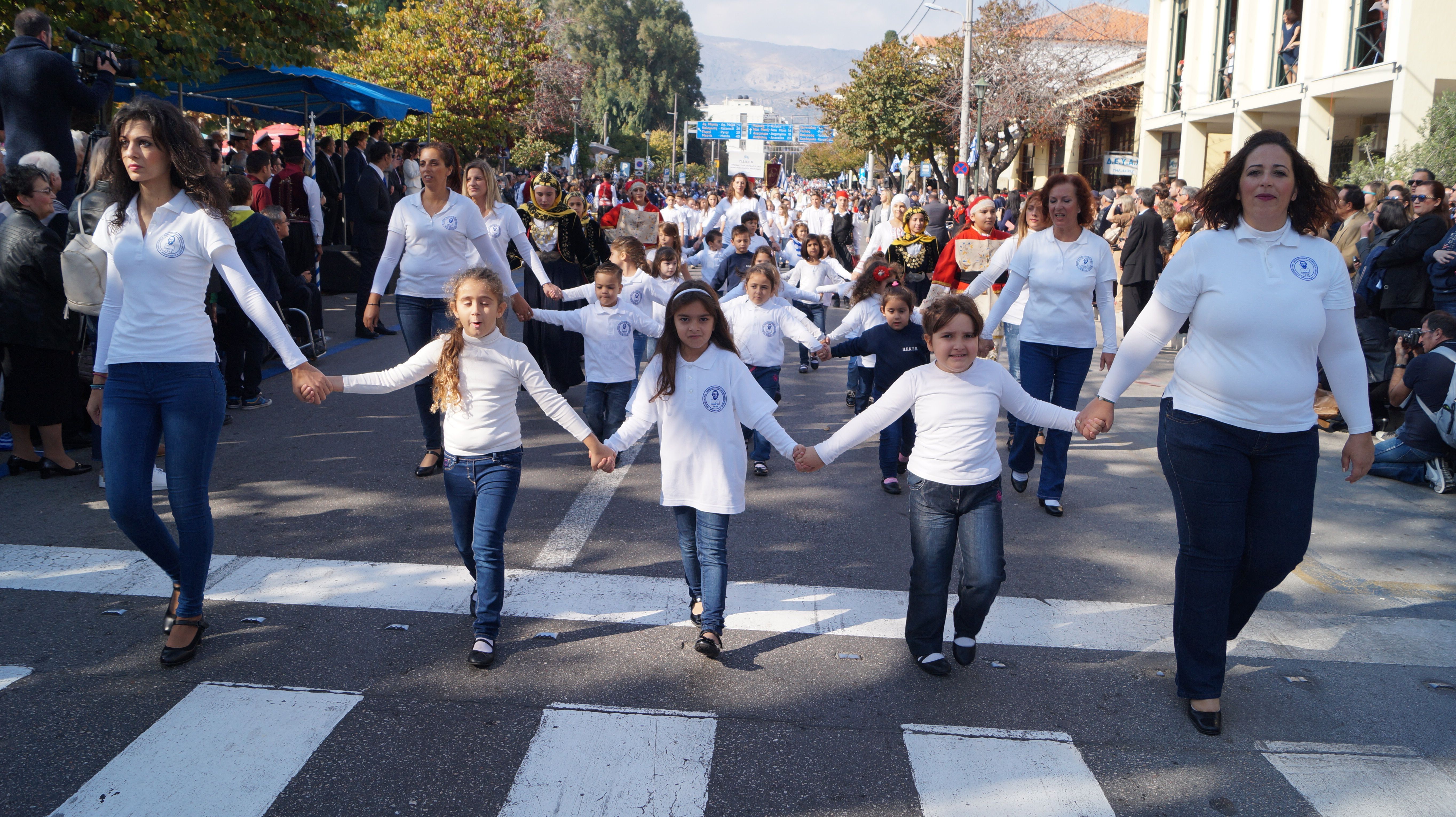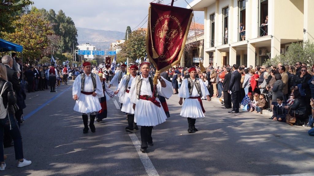Της παρελάσεως προηγήθηκε δοξολογία στον "Ιερό Μητροπολιτικό Ναό" προεξαρχόντων των Μητροπολιτών Μάνης κ. Χρυσόστομου, Χίου κ. Μάρκου, Ναυπάκτου και Αγίου Βλασίου Ιερόθεου και Νέας Ιωνίας και Φιλαδελφείας κ. Γαβριήλ. Τον πανηγυρικό της ημέρας εκφώνησε ο Διευθύντρια Εκπαίδευσης, Ευτυχία Βλυσίδου. Την Κυβέρνηση εκπροσώπησε ο Γενικός Γραμματέας του ΥΕΝ, Διονύσης Τεμπονέρας, ενώ στον χώρο των επισήμων παρακολούθησε τα παρελαύνοντα τμήματα ο καπ. Παναγιώτης Τσάκος.