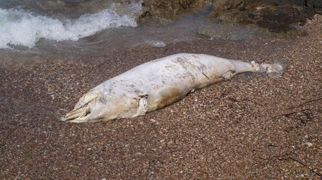 Ενα νεκρό δελφίνι, μήκους 2 μέτρων περίπου, ξεβράστηκε το μεσημέρι σε κατάσταση αποσύνθεσης, στην παραλία κάτω από τις εγκαταστάσεις της REV OIL.