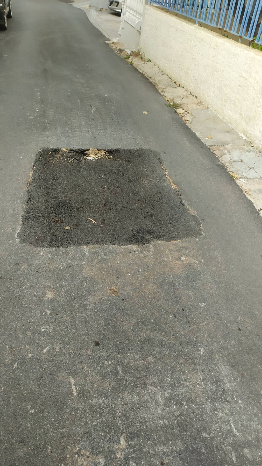 Ακριβώς απέναντ,ι είχε αφήσει μια τρύπα σε ένα στύλο ο ΔΕΔΔΗΕ, δεν ξέρουμε επειδή αυτό συνέβει πριν από... ένα μόνο έτος, μπορεί και να έκλεισε.