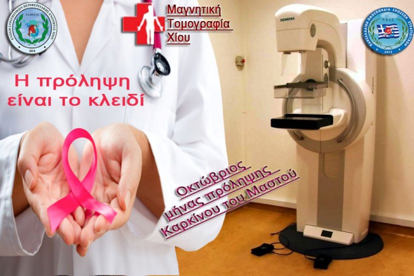 Η Ένωση Στρατιωτικών Περιφερειακής Ενότητας Χίου κατόπιν συνεννοήσεως με την Διεύθυνση του Διαγνωστικού εργαστηρίου "Μαγνητικής Τομογραφία Χίου" εξασφάλισε ένα ελκυστικά προνομιακό πακέτο (υπέρηχο – μαστογραφία) ώστε να αποτελέσει και κίνητρο για τις γυναίκες συναδέλφους αλλά και για τις συζύγους συναδέλφων για να εξεταστούν διότι Η πρόληψη είναι το κλειδί!!!