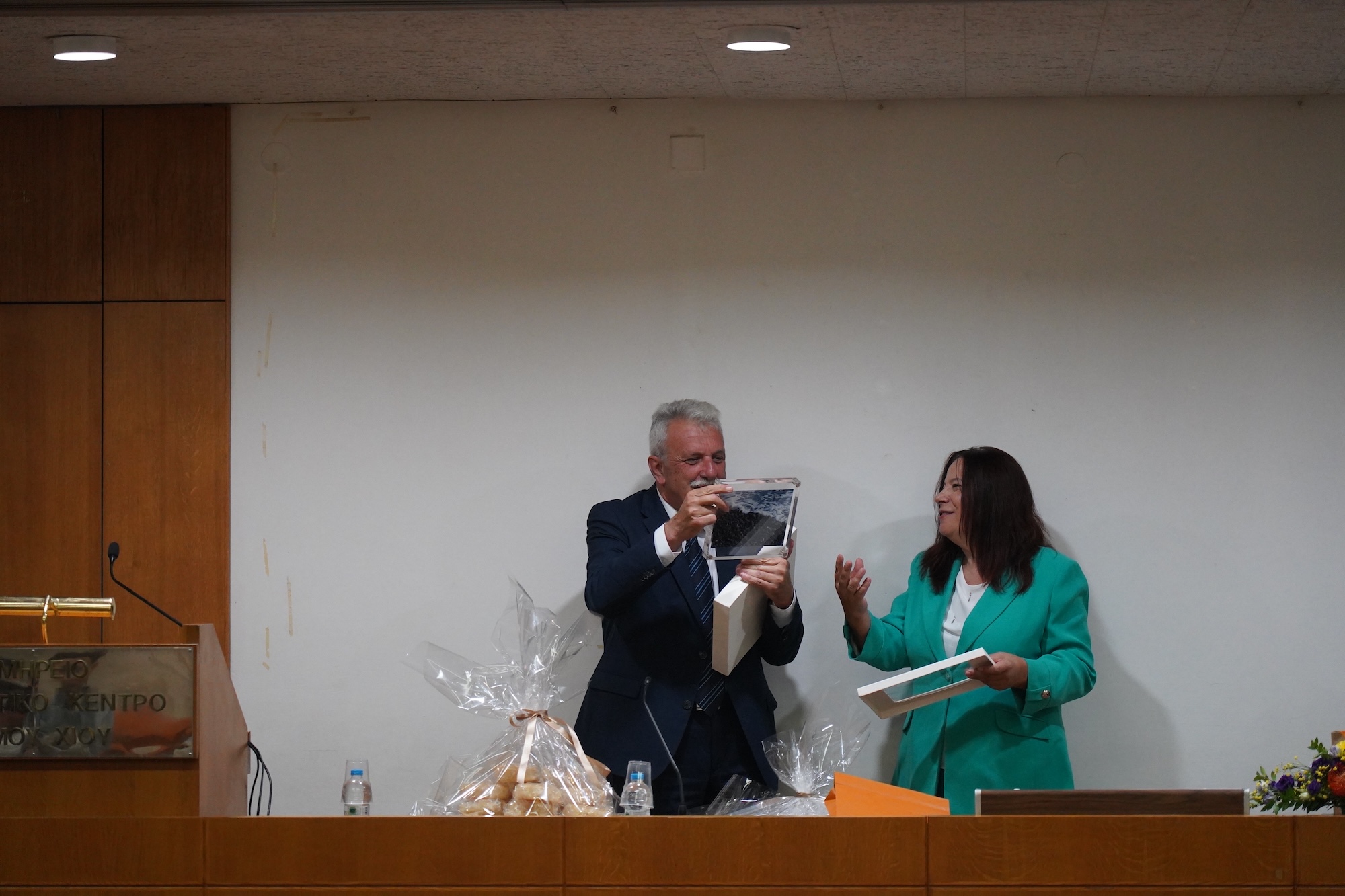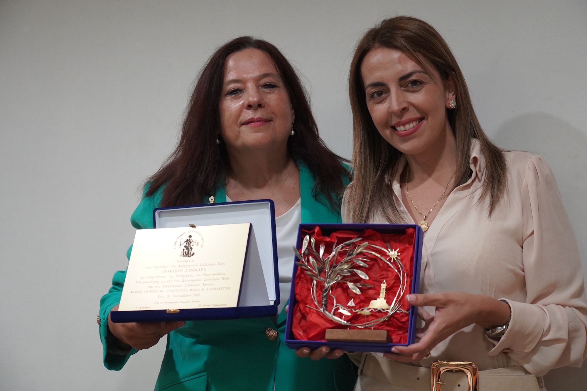 Η πρόεδρος του ΛΕΑΔ Χίου κ. Κουμή μίλησε για την σχέση της ΛΕΑΔ Χίου και Χανίων, ενώ στη συνέχεια τον λόγο πήρε και η πρόεδρος του ΛΕΑΔ Χανίων όπου χαιρέτισε τα μέλη αφηγούμενη την ιδέα της αδελφοποίησης αλλά και τους δεσμούς των νησιών μέσω του Ελευθερίου Βενιζέλου και της Έλενας Σκυλίτση. Όπως η ίδια σημείωσε οι κοινές δράσεις και οι αγωνίες με τα όπλα της γνώσης και της συνεργασίας, με πρόταση λύσεων, οι δύο ΛΕΑΔ θα είναι στεκόμενοι και αντιμέτωποι στις προκλήσεις της εποχής μας.