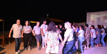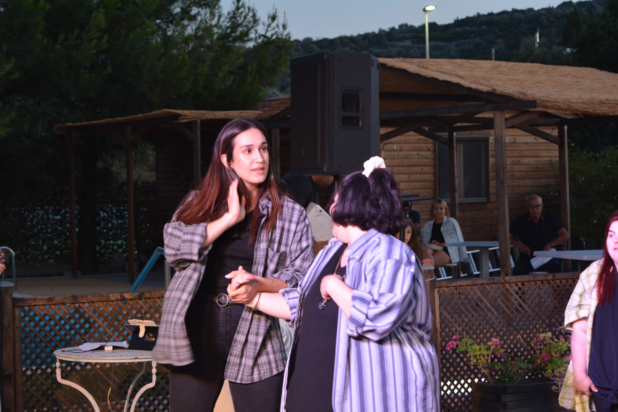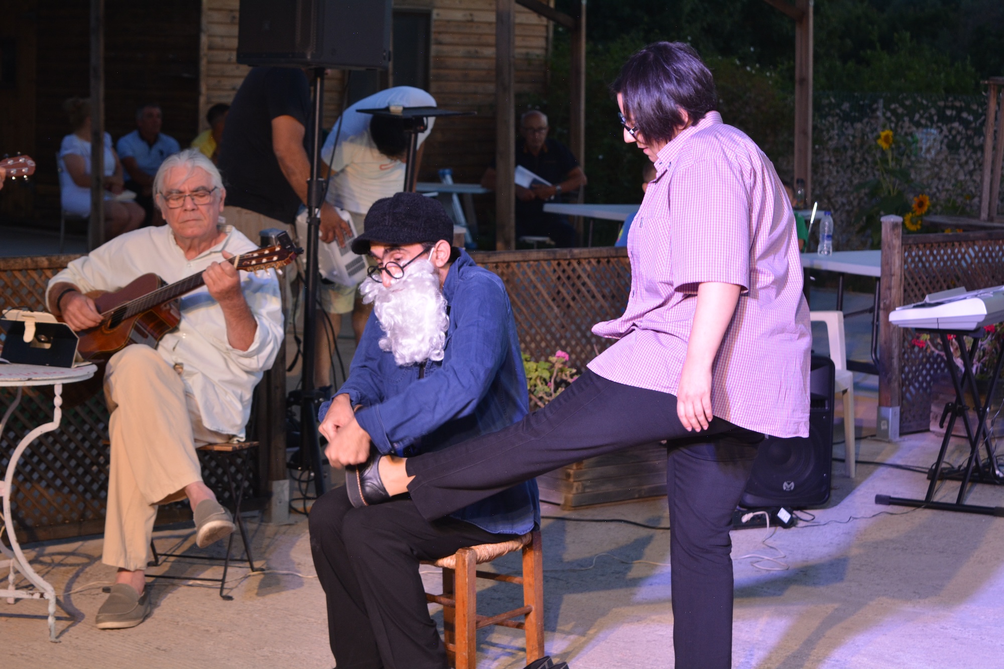 Στις 8:30 μ.μ., ακολούθησε θεατρική παράσταση από τους ωφελούμενους της δομής "Γέφυρα", σε σκηνοθεσία της Ευγενίας Ασλανίδου, ένα θεατρικό που μας μετέφερε στην χώρα της πλουτοκρατίας βλέποντας τη ζωή ενός τσαγκάρη.