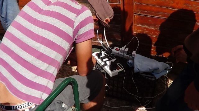 Απλωμένοι σε κάθε σκιά του Δημοτικού Κήπου βρίσκονταν και σήμερα οι σύροι πρόσφυγες, με αρκετούς πάντως να τολμούν μια βόλτα στην πόλη, όπου αυτοί που έχουν την οικονομική δυνατότητα κάνουν και τα απαραίτητα ψώνια τους. Με κάποιο τρόπο πάντως, ειδικά σήμερα, ή φέρνοντάς τα από την Τουρκία ή εδώ κάποιος έδωσε τέτοια... ρέστα πολλοί εμφανίστηκαν στα περίπτερα για να αγοράσουν τσιγάρα με παλιά πεντακοσάρικα της πάλαι ποτέ δραχμής! Η δημοφιλέστερη πάντως γωνιά και σήμερα του Δημοτικού Κήπου είναι έξω από τον θερινό Κινηματογράφο, όπου έχουν τραβηχθεί αρκετές γραμμές ρεύματος για να φορτίζουν τα κινητά τους τηλέφωνα, από τα οποία σπανίως βλέπει κανείς μοντέλα ευτελούς αξίας.