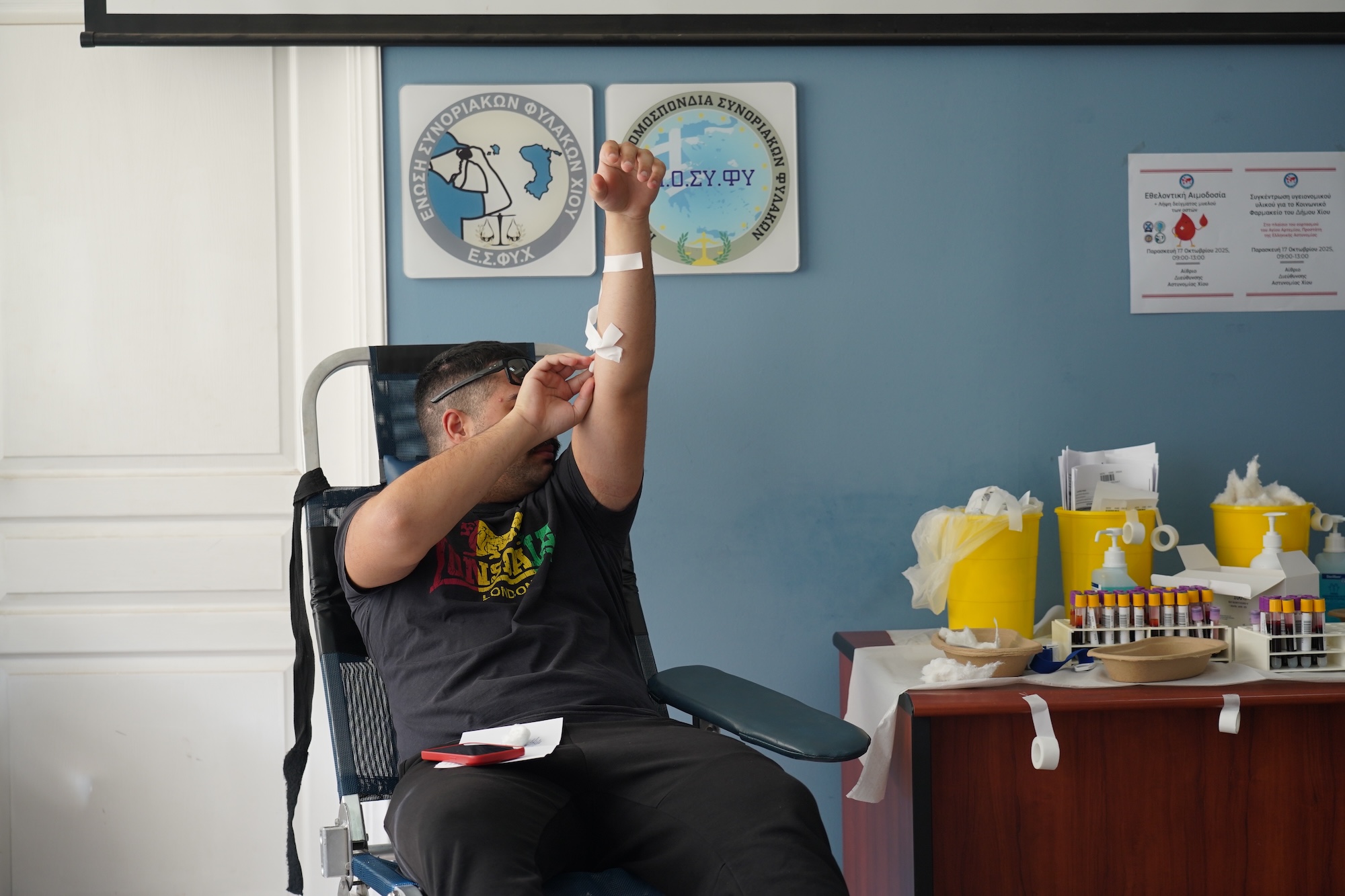 Η αιμοδοσία του Οκτωβρίου πραγματοποιήθηκε σήμερα, Παρασκευή 17 Οκτωβρίου, στο Αστυνομικό Τμήμα της πόλης της Χίου, στο πλαίσιο των δράσεων εορτασμού του προστάτη των αστυνομικών, του Αγίου Αρτεμίου.