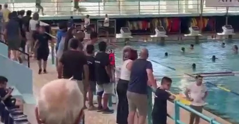 Αυτόπτες μάρτυρες κατέγραψαν ενήλικες να φωνάζουν και να κρέμονται από τα κάγκελα του κολυμβητηρίου, στοχοποιώντας τους μικρούς αθλητές, σε εικόνες που κυκλοφόρησαν στα μέσα κοινωνικής δικτύωσης και έχουν προκαλέσει αγανάκτηση.
