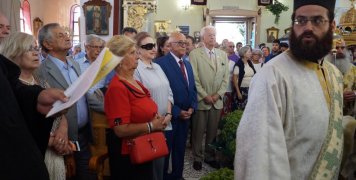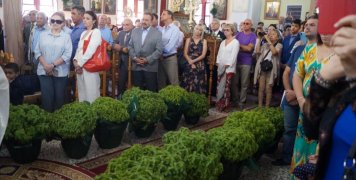 Στην Αρχιερατική Θεια Λειτουργία παρέστησαν ο Υφυπουργός Εργασίας και Κοινωνικών Υποθέσεων Νότης Μηταράκης, οι πρώην υπουργοί Γιώργος Ανωμερίτης και Φάνη Πάλλη-Πετραλιά, οι Παναγιώτης και Νίκος Τσάκος, ο ακαδημαϊκός Σταμάτης Κριμιζής, ο αντιπεριφερειάρχης Χίου Παντελής Μπουγδάνος, ο Δήμαρχος Χίου Σταμάτης Κάρμαντζης καθώς και πλήθος πιστών.