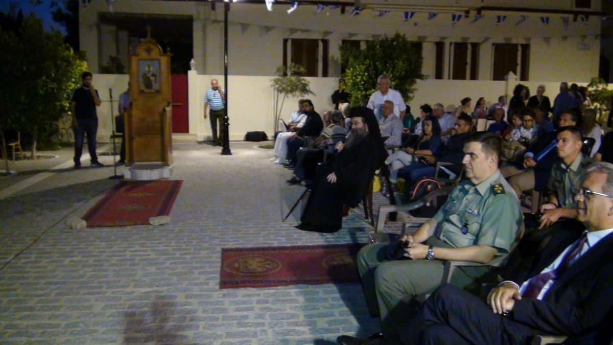 Αμέσως μετά την τέλεση του Πανηγυρικού Αρχιερατικού Εσπερινού για την Εορτή του Αποστόλου Παύλου, Πέτρου και Παύλου και των Αγίων Αποστόλων, ακολούθησαν σύντομες κατατοπιστικές ομιλίες του Μητροπολίτη Χίου Ψαρών και Οινουσσών κ.κ. Μάρκου και του Δημάρχου Οινουσσών Γιώργου Δανιήλ που εισήγαγαν το κοινό στο θέμα τις εορτής και της εκδήλωσης.