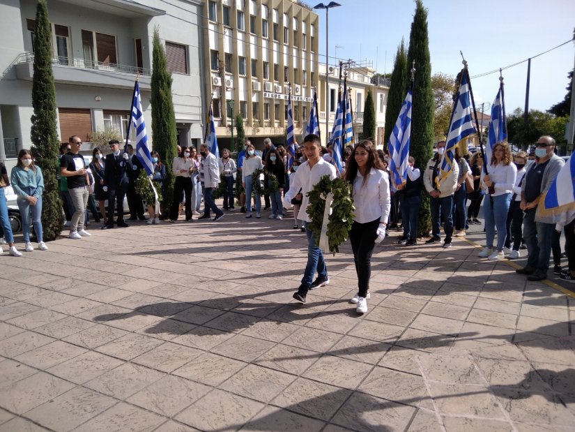 Μπορεί παρέλαση να μη γίνει αύριο, αλλά σήμερα τηρήθηκε το μέρος των καθιερωμένων επετειακών εκδηλώσεων για την απόδοση τιμής στο έπος του '40, με την παρουσία αντιπροσωπευτικών τμημάτων μαθητών που κατέθεσαν στεφάνια στο Ηρώον των πεσόντων.