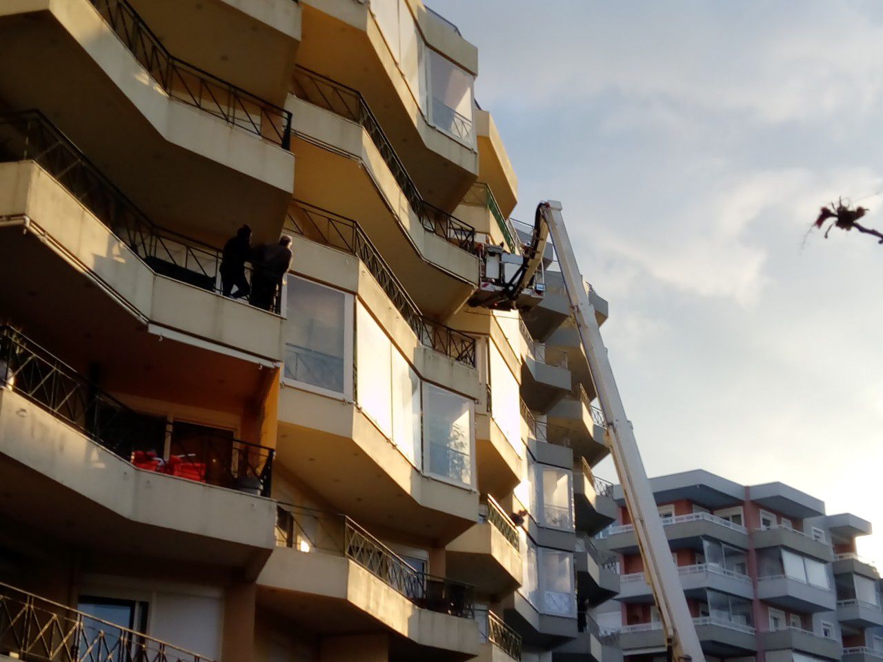 Ο λόγος για ζευγάρι που κατόρθωσε τελικά με τη βοήθεια του καλαθοφόρου οχήματος της Πυροσβεστικής και τη συνδρομή τριών πυροσβεστών να βγει από το διαμέρισμα σώο και αβλαβές.