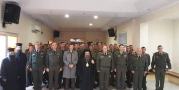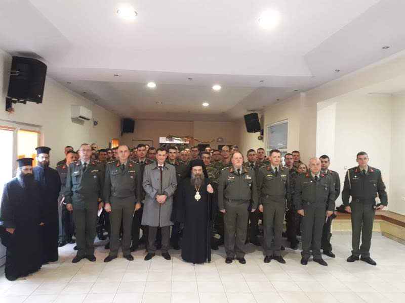 Ἀκολούθως, ἐπισκέφθηκε τό Στρατόπεδο τοῦ 228 Μ/Κ/ΤΕ, ὅπου τόν ὑποδέχθηκε ὁ Διοικητής τῆς 96 ΑΔΤΕ Ταξίαρχος κ. Παναγιώτης Κιμουρτζῆς, ὁ Διοικητής τοῦ 228Μ/Κ/ΤΕ κ. Δημήτριος Τσαφούλης, λοιποί Ἀξιωματικού Ὑπαξιωματικοί καί Ὁπλίτες μέ τούς ὁποίους συνομίλησε, εὐχήθηκε ἑορτίως καί προσέφερε γλυκά καί τευχίδια ὀρθοδόξου περιεχομένου."