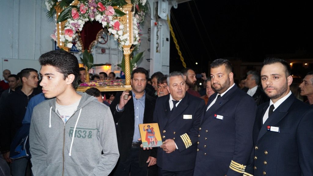Ο Χιώτης Πλοίαρχος του Γιώργης Αρβανίτης έδωσε εντολή να εισέλθουν βαθύτερα τα φορτηγά και έτσι ο Επιτάφιος δεν στάθηκε απλά στον καταπέλτη, αλλά μπήκε μέσα στο πλοίο για να τον προσκυνήσει συγκινημένο το πλήρωμα αλλά και επιβάτες.