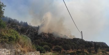 Στην κατάσβεσή της επιχειρούν και μέσα από αέρος προκειμένου να μην φτάσει κοντά στα σπίτια.