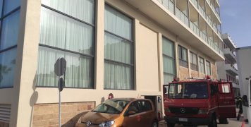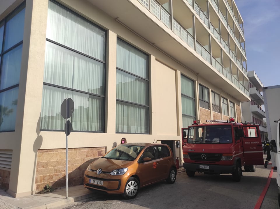 Ήδη οχήματα της πυροσβεστικής έχουν φτάσει στο ξενοδοχείο και συμμετέχουν στην κατάσβεσηή της.