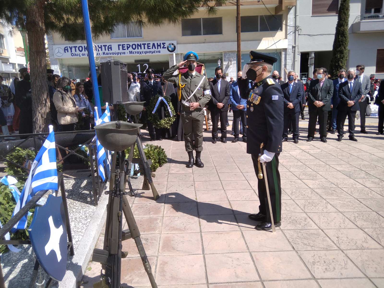 Προηγήθηκε Δοξολογία στον Ιερό Μητροπολιτικό Ναό και κατάθεση στεφάνων από τις πολιτικές και στρατιωτικές αρχές. Τον πανηγυρικό της ημέρας εκφώνησε η Φιλόλογος Μαρία Παπλού, που η αναφορά της στην σημασία της 25ης Μαρτίου στην σύγχρονη εποχή απέσπασε το χειροκρότημα των παρισταμένων.