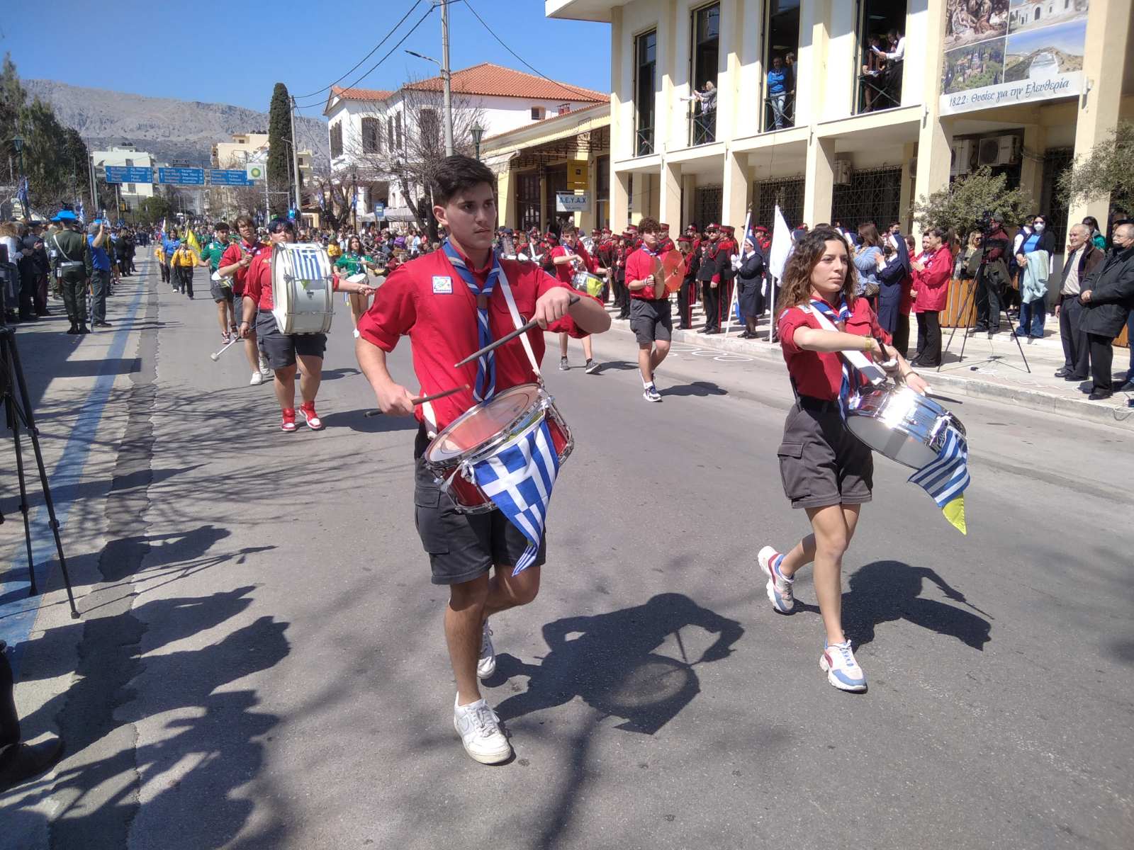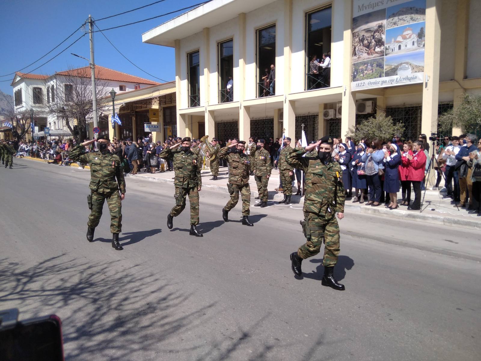 Μετά από πολυήμερη παγωνιά ο ήλιος ζέστανε σήμερα την ημέρα της Ελευθερίας και έτσι τουλάχιστον στο νησί μας οι καιρικές συνθήκες επέτρεψαν οι γιορταστικές εκδηλώσεις της 25ης Μαρτίου να έχουν υψηλή συμμετοχή στην μαθητική και στρατιωτική παρέλαση, που έγινε στην οδό Δημοκρατίας.
