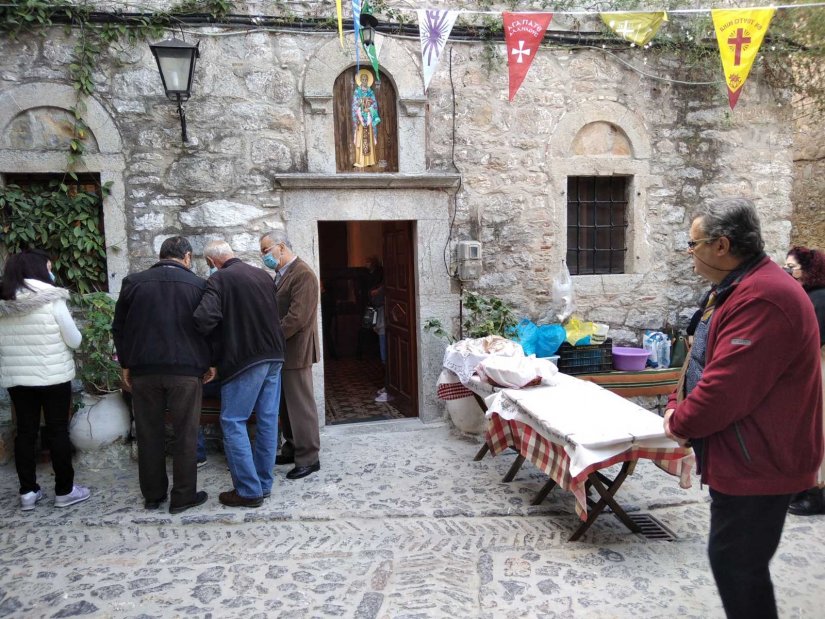 Πραγματοποιήθηκε σήμερα με μεγάλη συμμετοχή στα Μεστά, στο παρεκκλήσι του Αγίου Νικολάου, στο κέντρο του χωριού, η γιορτή των Αγίων Σαμωνα, Αβήρου και Γουρια, των οποίων μοναδική και σπάνια εικόνα βρέθηκε πριν 300 χρόνια περιπου στην περιοχη Σκυλιά.