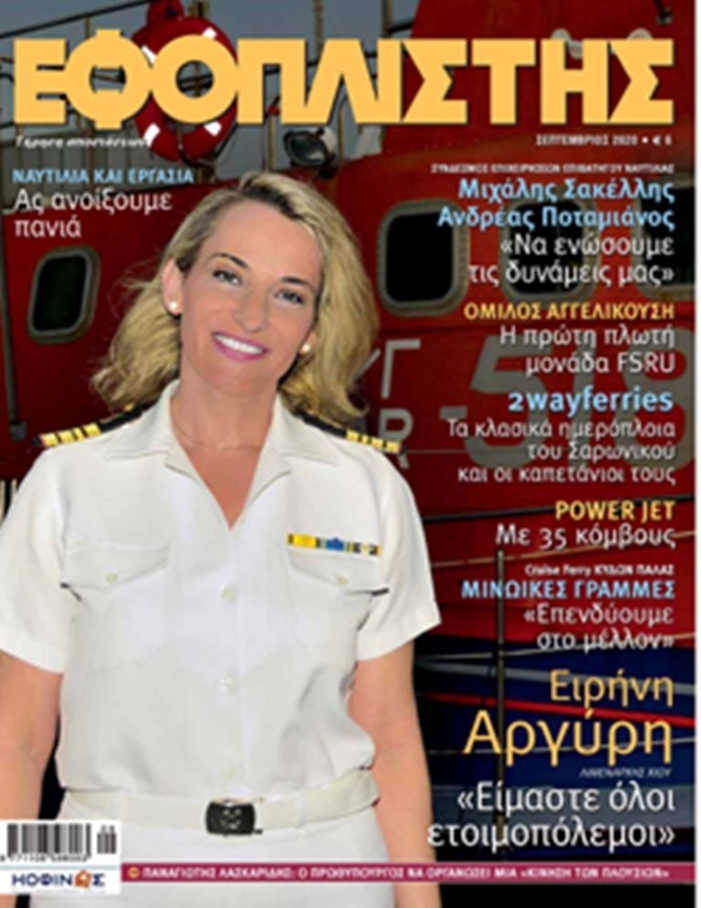 Την Λιμενάρχη Χίου Ειρήνη Αργύρη φιλοξενεί στο πρωτοσέλιδο του το περιοδικό «ΕΦΟΠΛΙΣΤΗΣ», τιμώντας στο πρόσωπο της όλο το Λιμενικό Σώμα για τον καθημερινό αγώνα στα νερά του Αιγαίου.