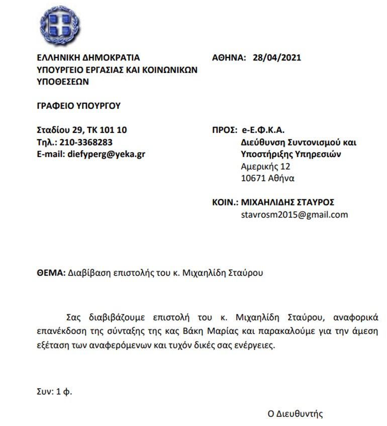 Χαρακτηριστικό είναι ότι ο Σταύρος Μιχαηλίδης απευθύνθηκε στον αρμόδιο υπουργό Εργασίας, ο οποίος ασχολήθηκε με το ζήτημα και έδωσε εντολή στον ΕΦΚΑ να πράξει τα... δέοντα. Οι αρμόδιοι της υπηρεσίας όμως φαίνεται ότι για κάποιον απίστευτο λόγο αγνοούν όχι μόνο τις δικαστικές αποφάσεις, αλλά και την εντολή του υπουργού!