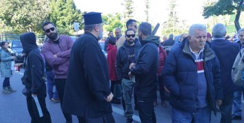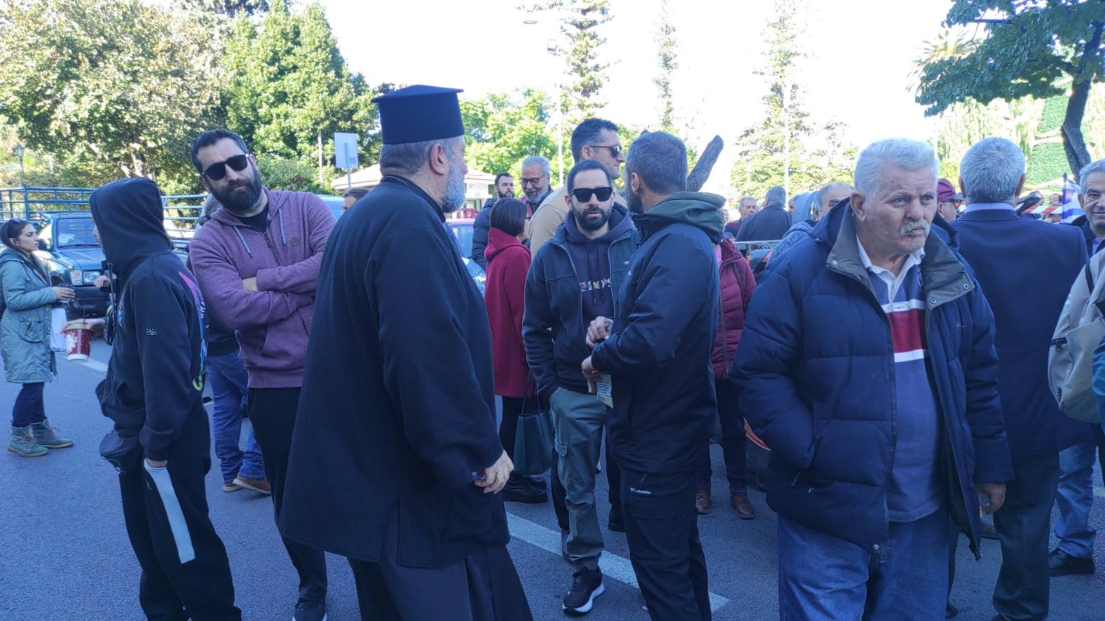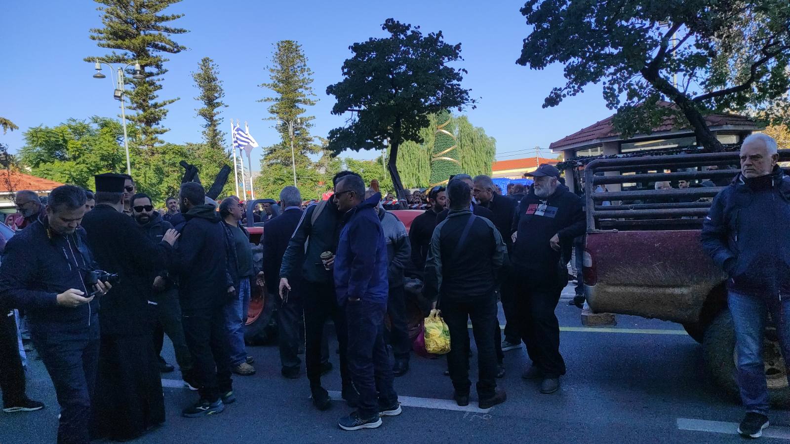 Συμπαραστεκόμενοι στους παραγωγούς στην κινητοποίηση μετέχουν και μέλη του συνδέσμου Κληρικών Χίου.