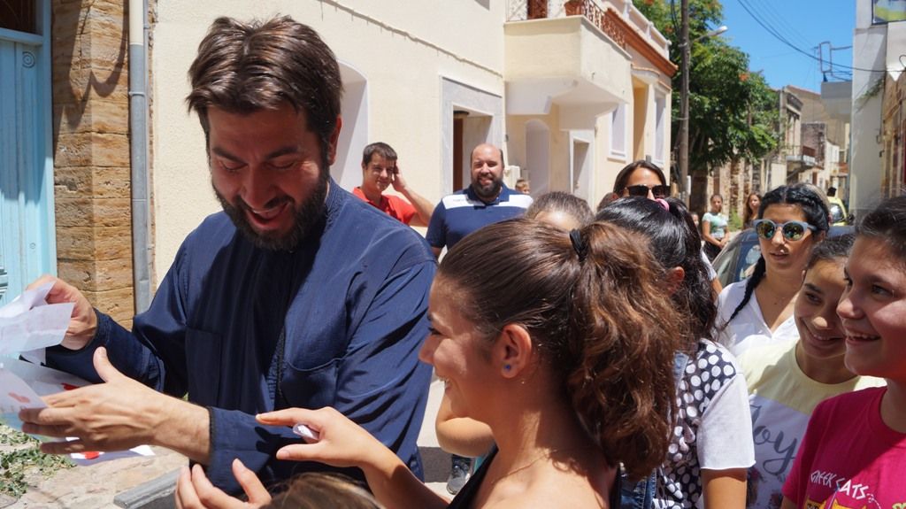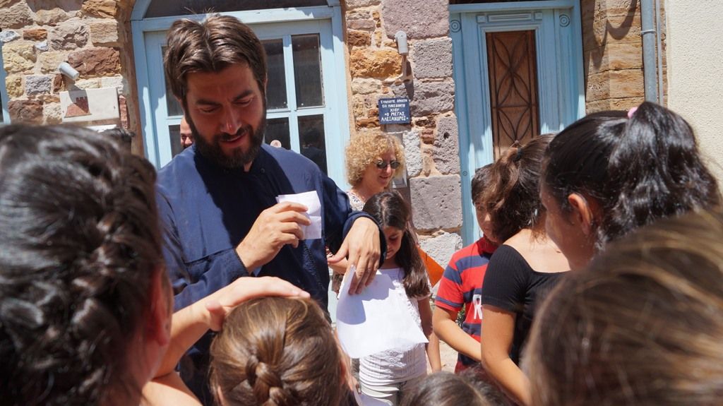 Νόμιζα που ήταν διαδήλωση, είπε συγκινημένος ο πατ. Αντώνιος, που άρχισε να συνομιλεί με τα παιδιά σε συλλογικό αλλά και ατομικό επίπεδο.