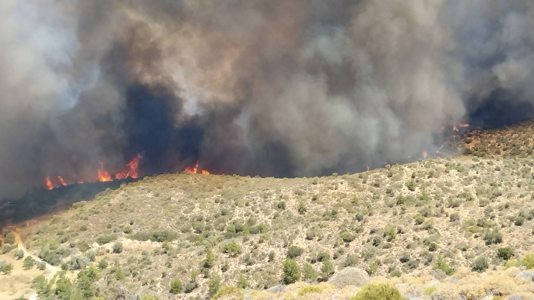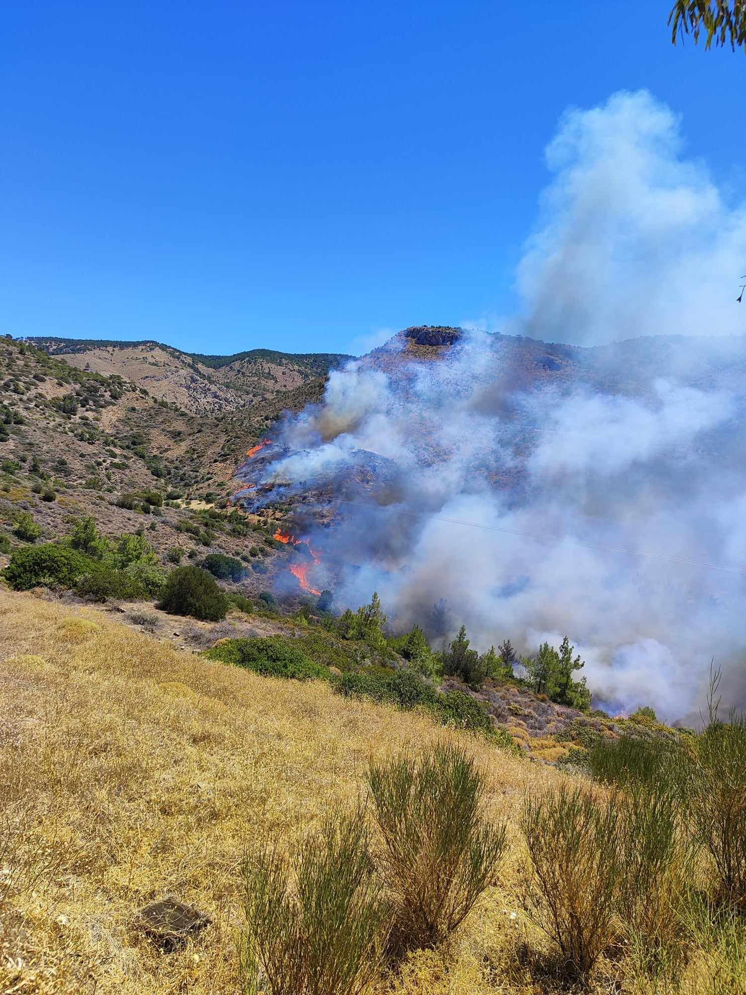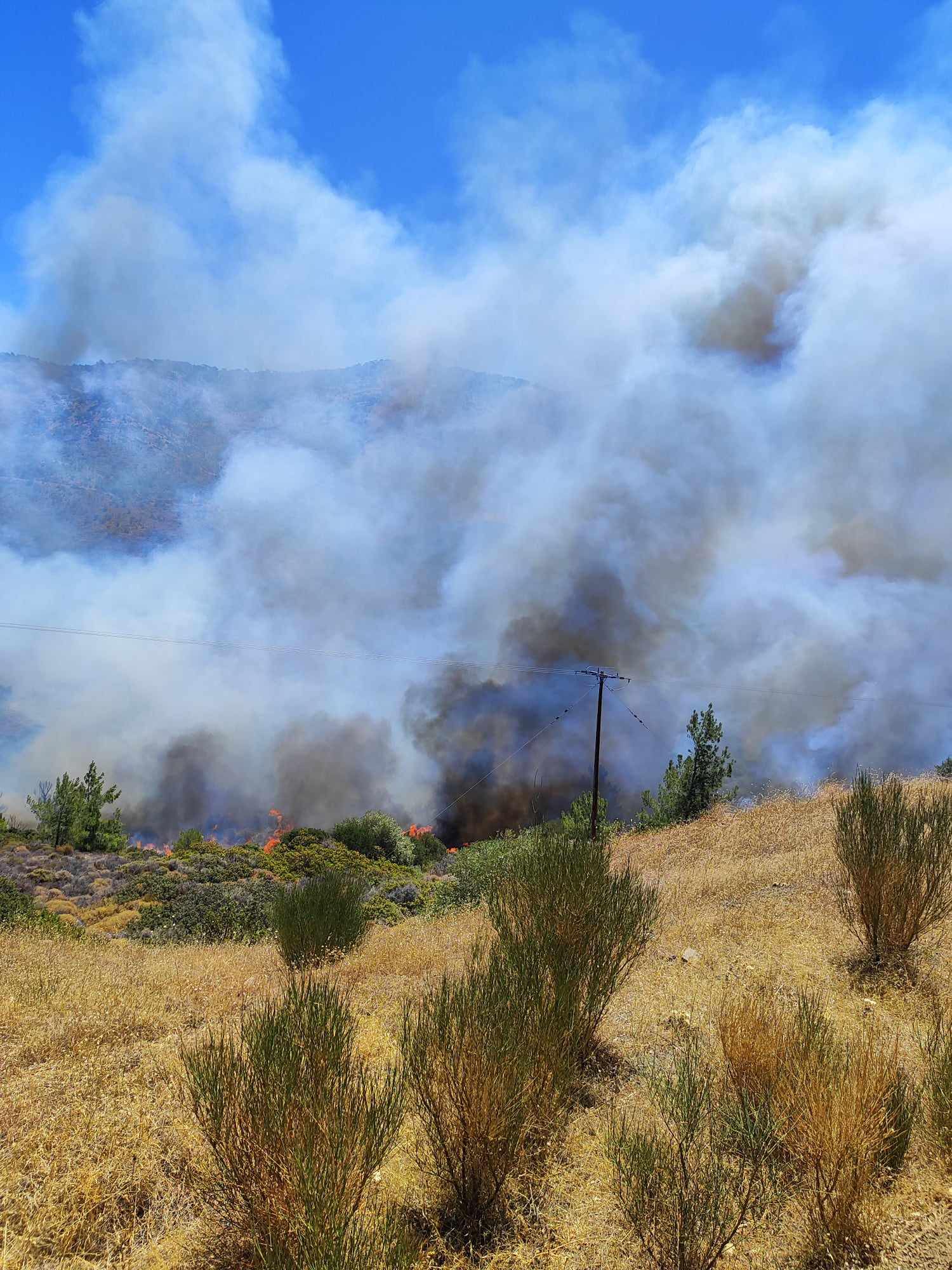 Αξίζει να αναφερθεί ότι είναι τέτοιο το πύρινο φορτίο, που στις δύο το μεσημέρι, το σύννεφο του καπνού, ήταν ορατό και στην πόλη της Χίου.