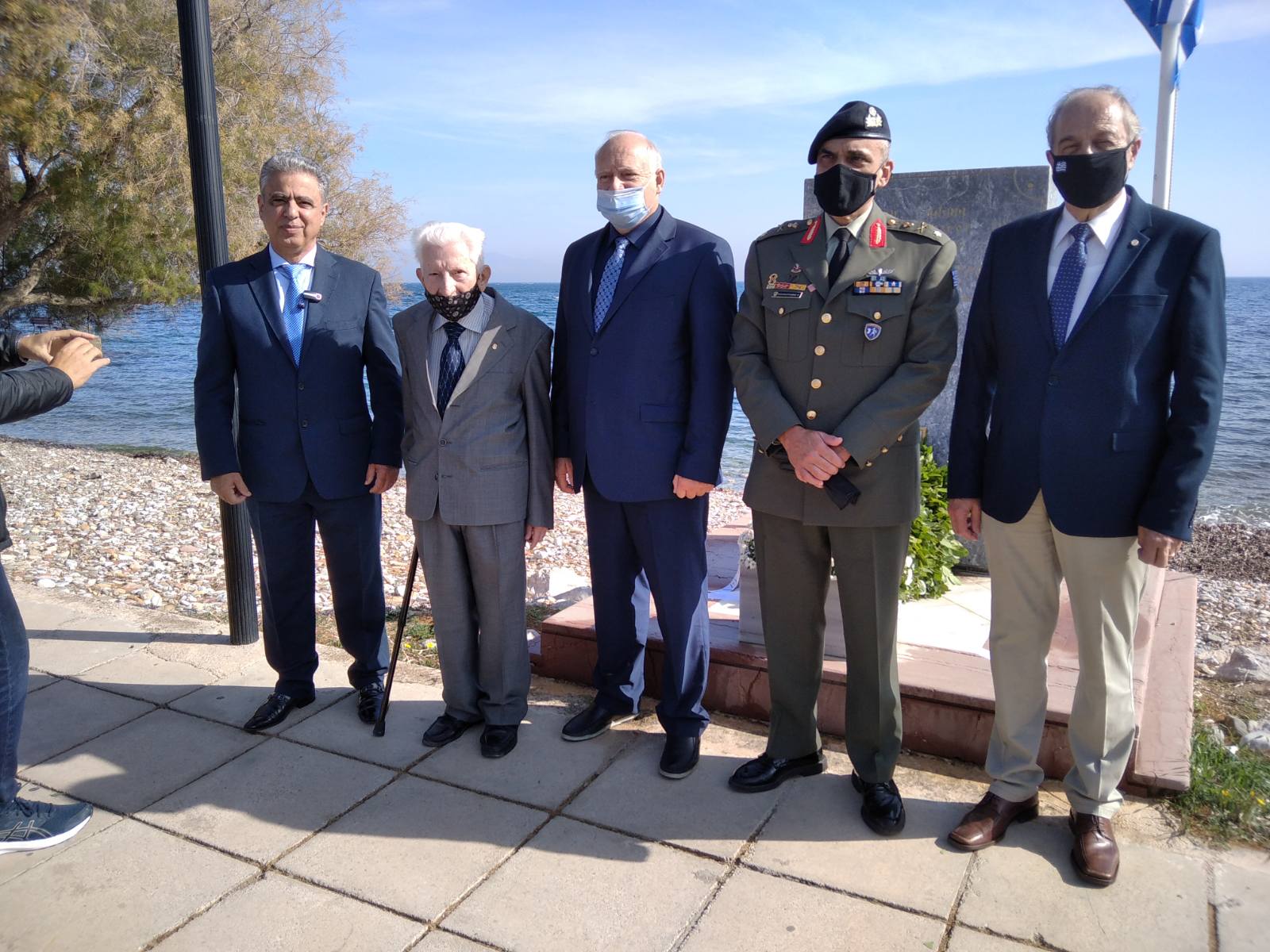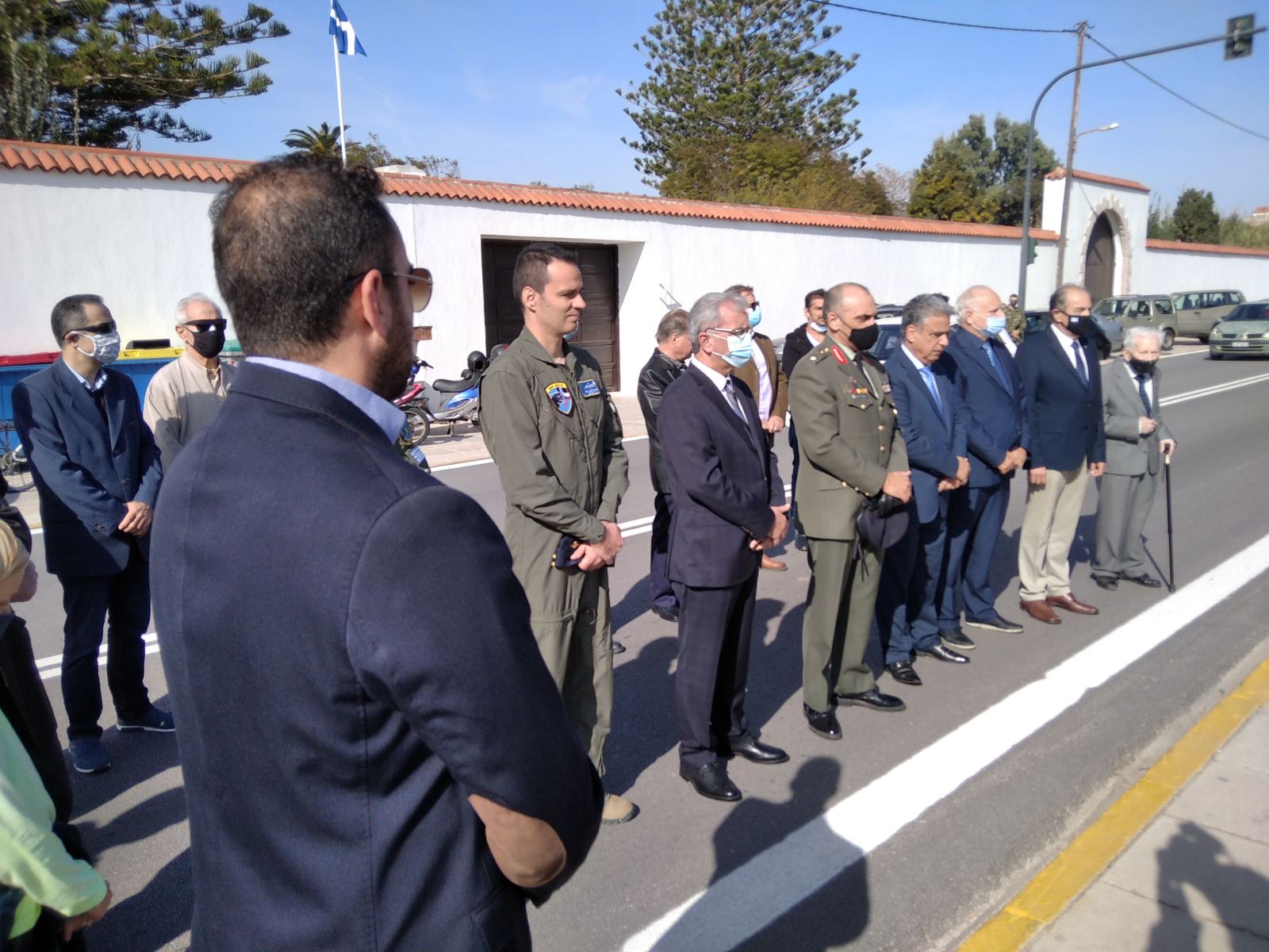 Στην εκδήλωση κατέθεσαν στεφάνια, ο Δήμαρχος Χίου Σταμάτης Κάρμαντζης, ο Αντιπεριφερειάρχης Παντελής Βρουλής, ο Στρατιωτικός Διοικητής Χίου Ταξίαρχος Κ. Κολοκοτρώνης, ο Διοικητής της Αεροπορικής μοίρας του Super Puma που εδρεύει στο νησί μας και ο Πρόεδρος του Δημοτικού Συμβουλίου Χίου και Πρόεδρος της Ενώσεως Εφέδρων Αξιωματικών Παύλος Καλογεράκης.