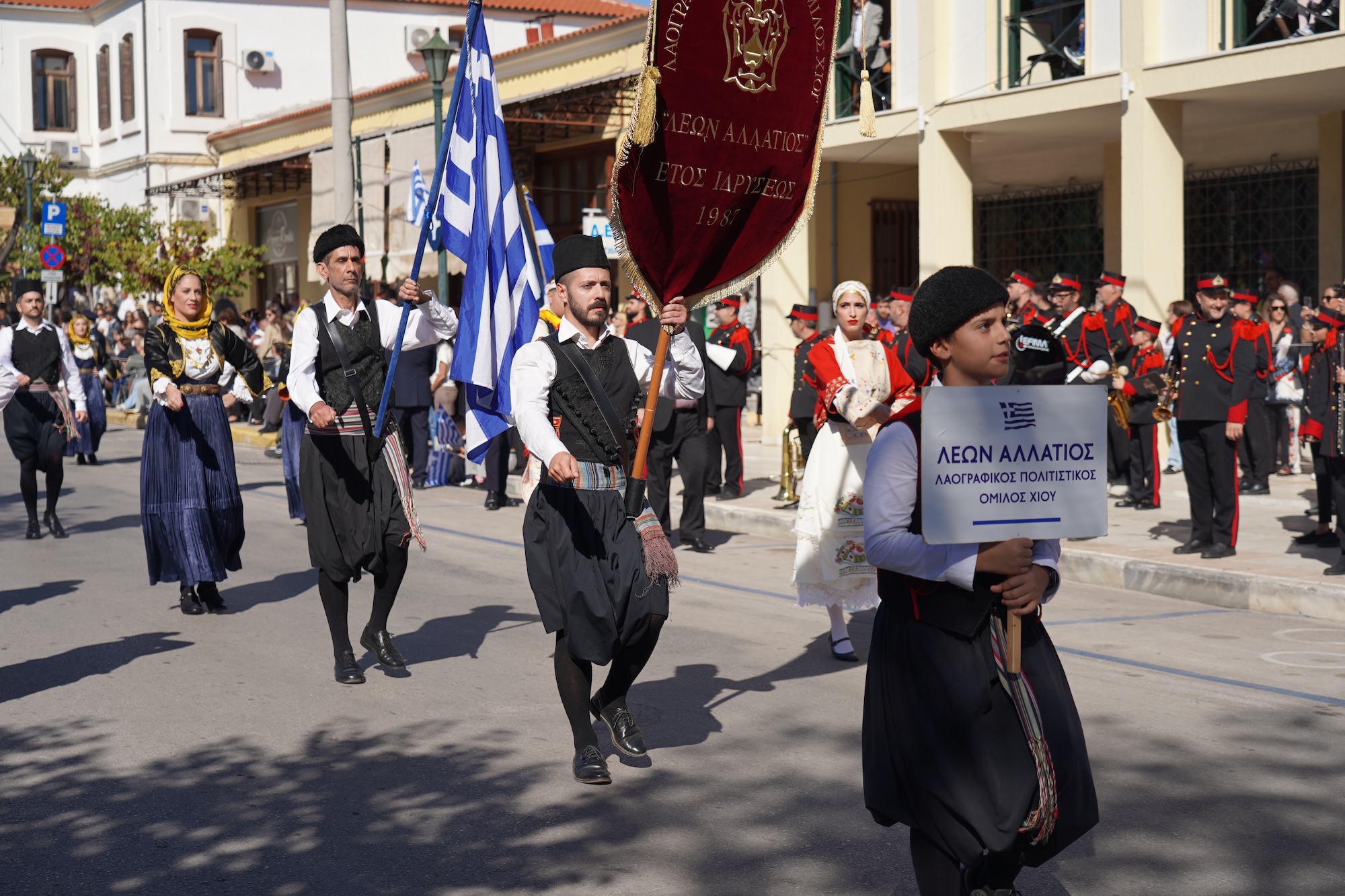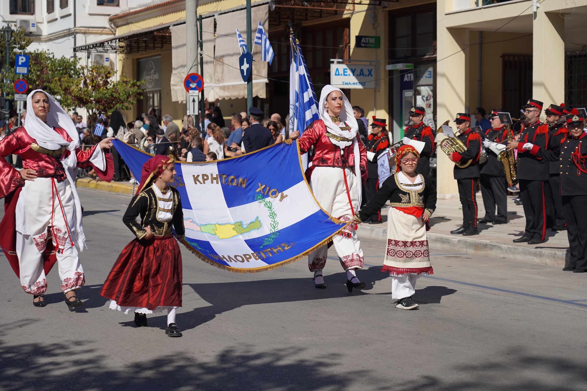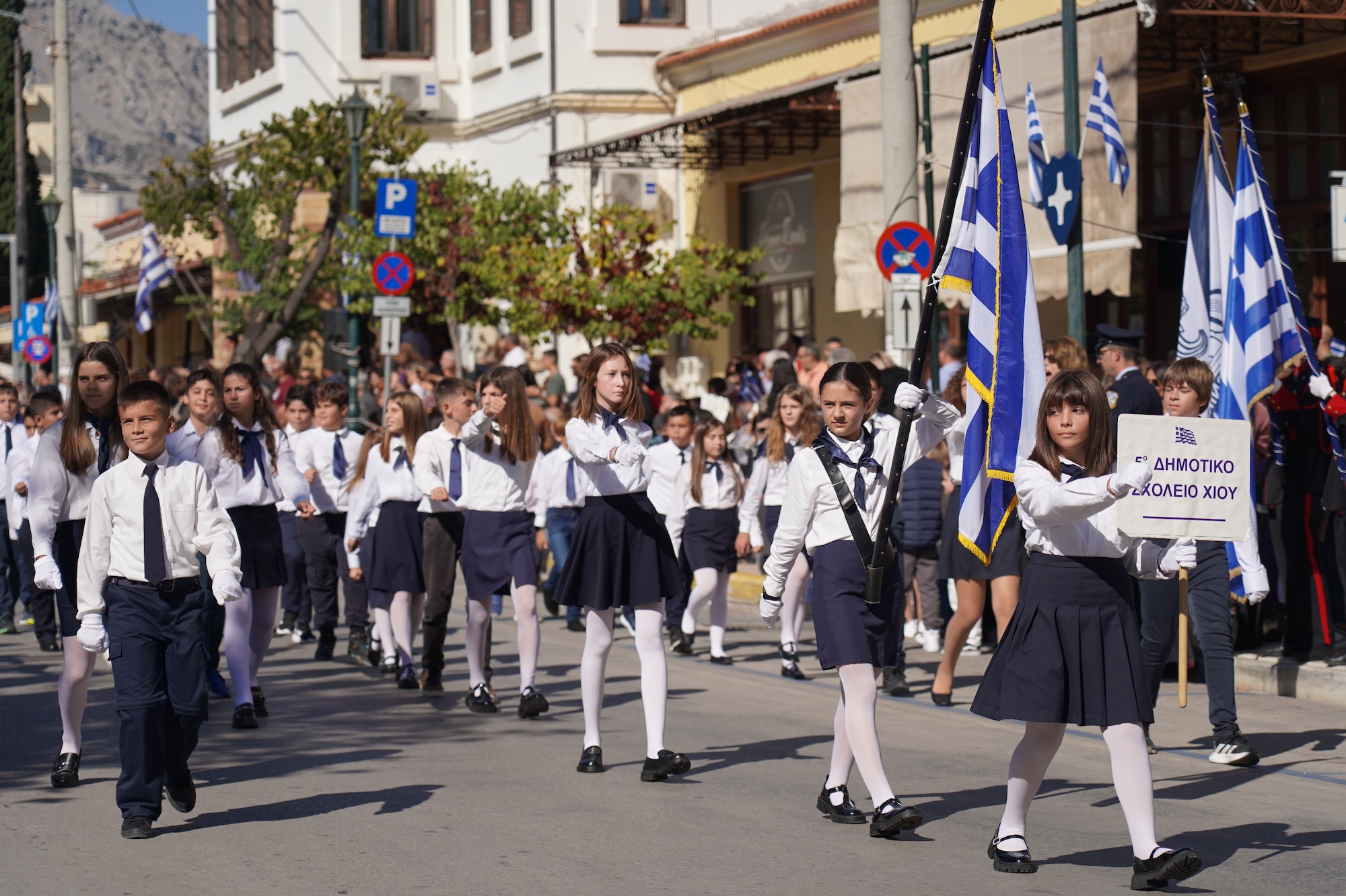 Με λαμπρότητα και εθνική υπερηφάνεια πραγματοποιήθηκαν στη Χίο οι εκδηλώσεις για την εθνική επέτειο της 28ης Οκτωβρίου 1940, τιμώντας την ιστορική άρνηση της Ελλάδας στις ιταλικές αξιώσεις και την είσοδο της χώρας στον Β' Παγκόσμιο Πόλεμο.
