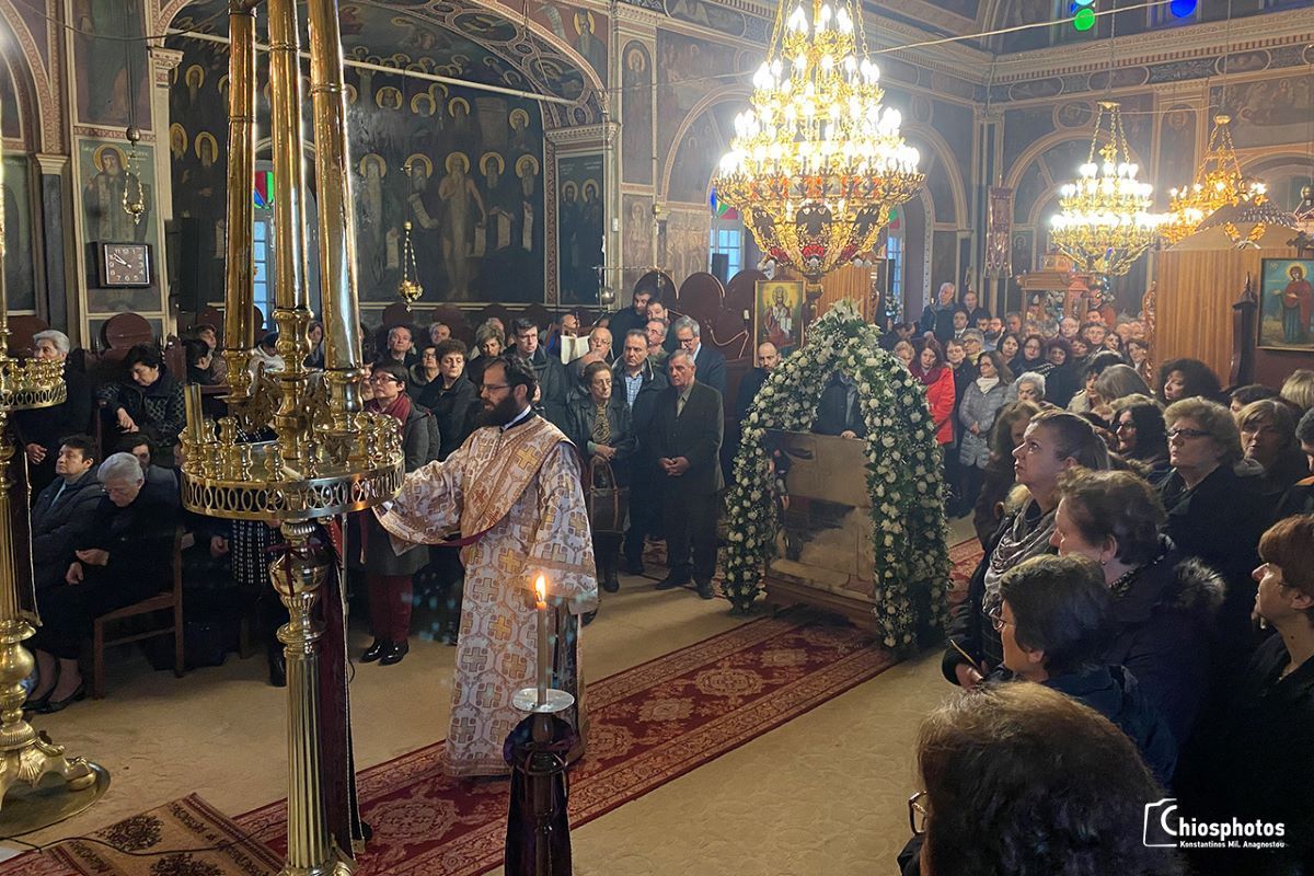 Με κάθε εκκλησιαστική μεγαλοπρέπεια τελέστηκε το πρωί του Σαββάτου η Αρχιερατική Θεία Λειτουργία του Οσίου Ανθίμου του Γέροντος, ιδρυτού και κτήτορος της Ιεράς Μονής Παναγίας Βοηθείας, ιερουργούντος του Σεβασμιωτάτου Μητροπολίτου Χίου Ψαρρών και Οινουσσών Κ. Μάρκου, πλαισιωμένου από πολλούς ιερείς και από πλήθος πιστών που συνέρευσαν από όλο το νομό για να τιμήσουν τον Όσιο Άνθιμο εν Χίω τον θαυματουργό.