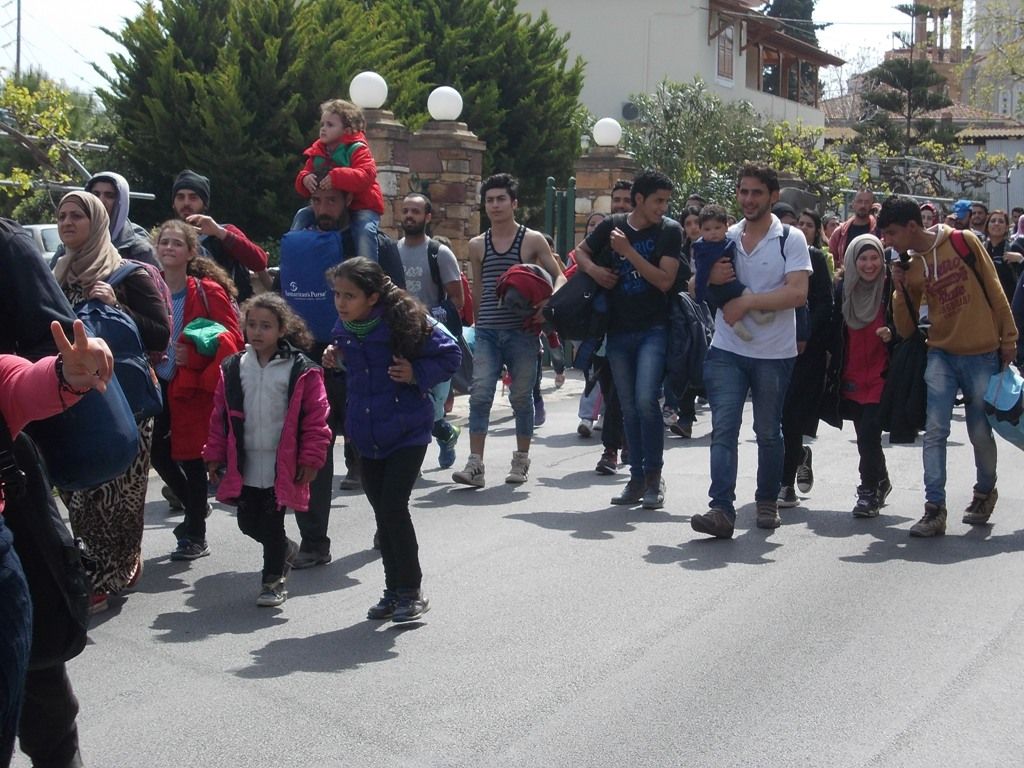 500 περίπου πρόσφυγες και μετανάστες, Σύριοι, οικογένειες με παιδιά, οι οποίοι έφυγαν από το Κέντρο Κράτησης στην πρώην ΒΙΑΛ, κατευθύνονται πεζοί προς το κέντρο της πόλης.