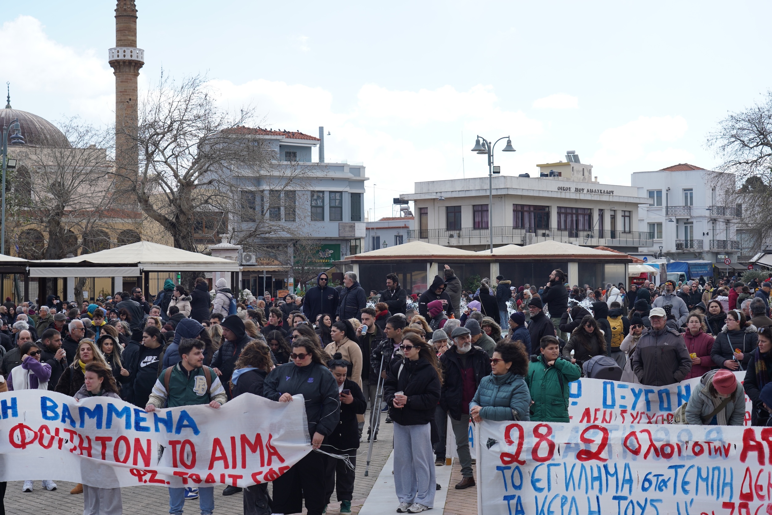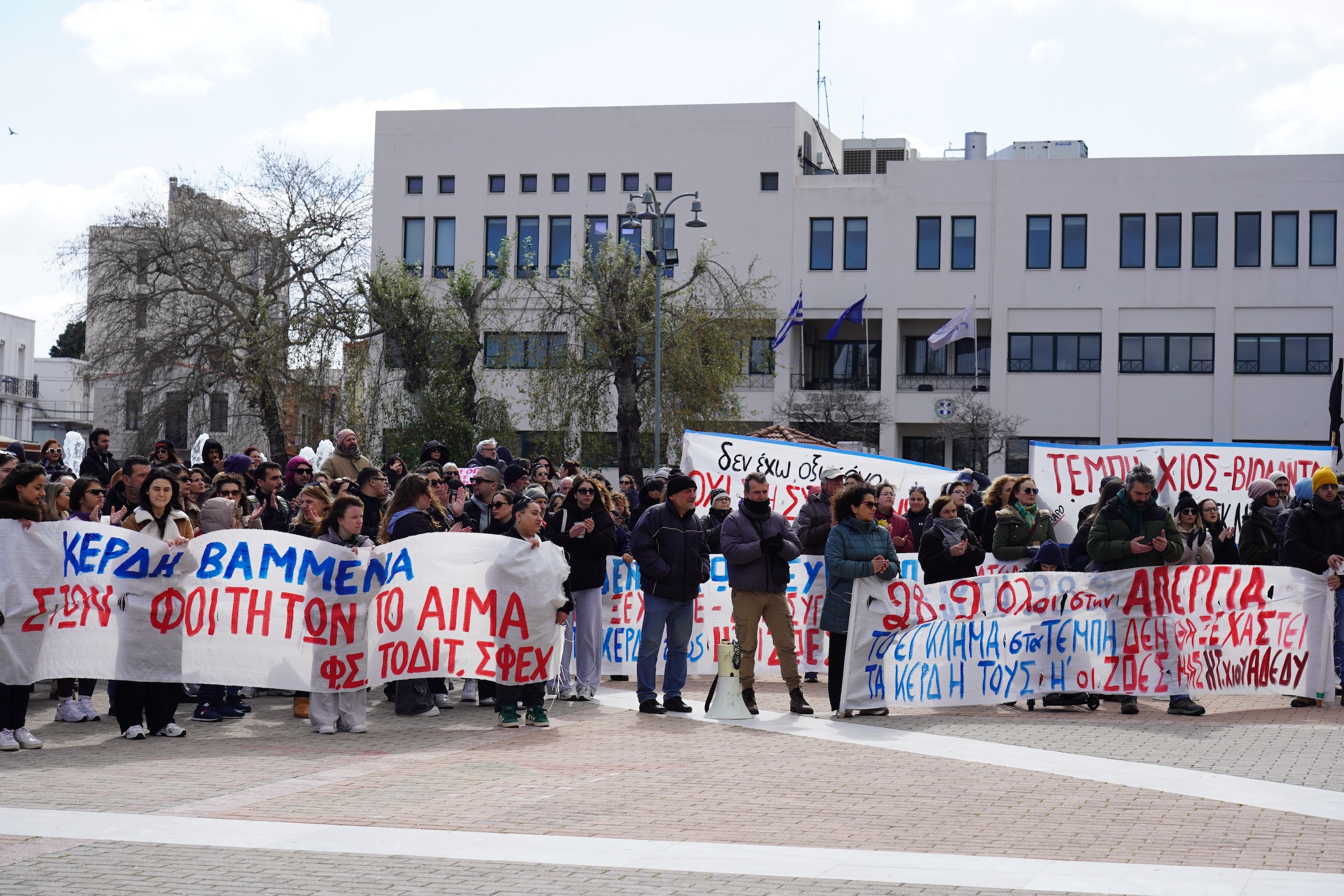Τρία χρόνια μετά το πολύνεκρο σιδηροδρομικό δυστύχημα στην περιοχή των Τεμπών, οι πολίτες της Χίου συγκεντρώθηκαν το μεσημέρι του Σαββάτου 28 Φεβρουαρίου 2026, στην πλατεία Νικολάου Πλαστήρα, για να τιμήσουν τη μνήμη των θυμάτων και να στείλουν ένα ηχηρό μήνυμα απόδοσης δικαιοσύνης.