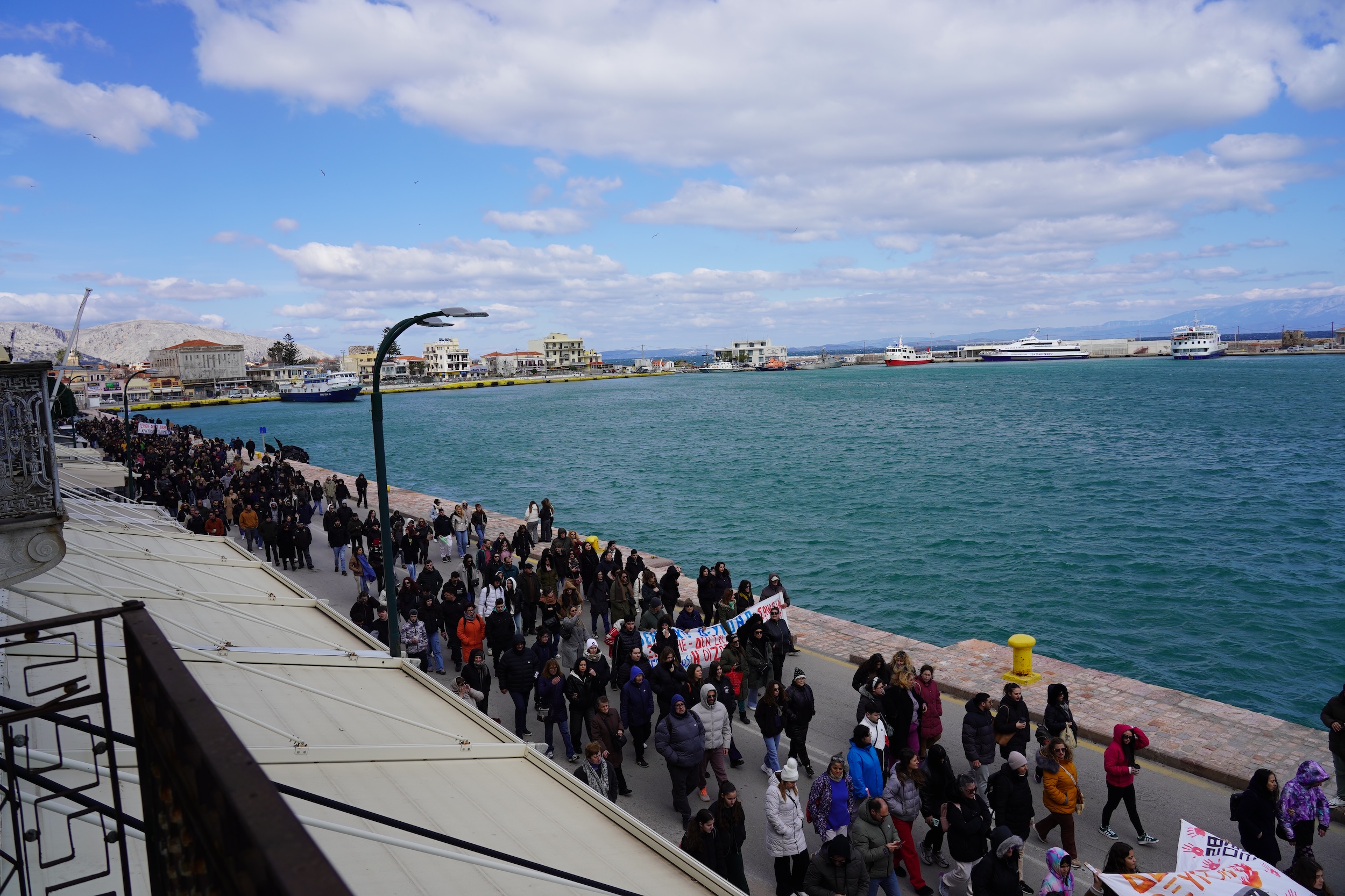 Μετά την ολοκλήρωση των ομιλιών, ακολούθησε πορεία στον κεντρικό δρόμο του παραλιακού λιμένα Χίου. Οι διαδηλωτές κινήθηκαν ειρηνικά, κρατώντας πανό και φωνάζοντας συνθήματα, με την παρουσία μαθητών και νέων ανθρώπων να είναι ιδιαίτερα έντονη.
