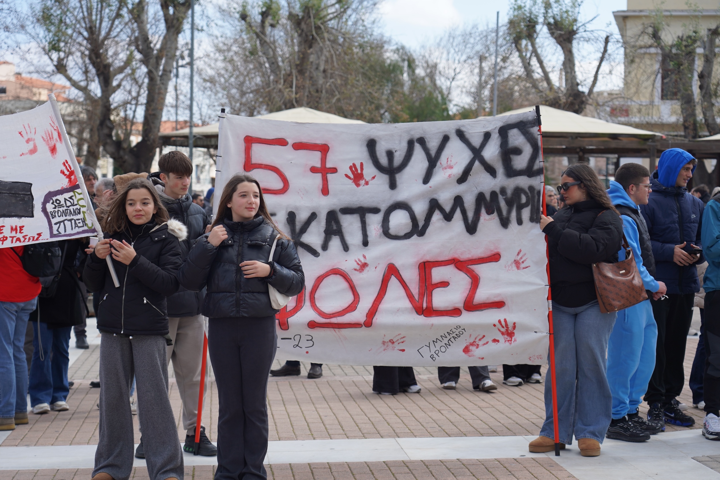 Η εκδήλωση άνοιξε με την ομιλία της μαθήτριας Κατερίνας, εκπροσώπου του συντονιστικού οργάνου των μαθητών. Με λόγο καθαρό και φορτισμένο συναισθηματικά, ανέφερε ένα προς ένα τα ονόματα των ανθρώπων που έχασαν τη ζωή τους στο δυστύχημα. Η ανάγνωση των ονομάτων αποτέλεσε μία από τις πιο συγκλονιστικές στιγμές της συγκέντρωσης, υπενθυμίζοντας πως πίσω από τους αριθμούς υπάρχουν πρόσωπα, όνειρα και οικογένειες που πενθούν.